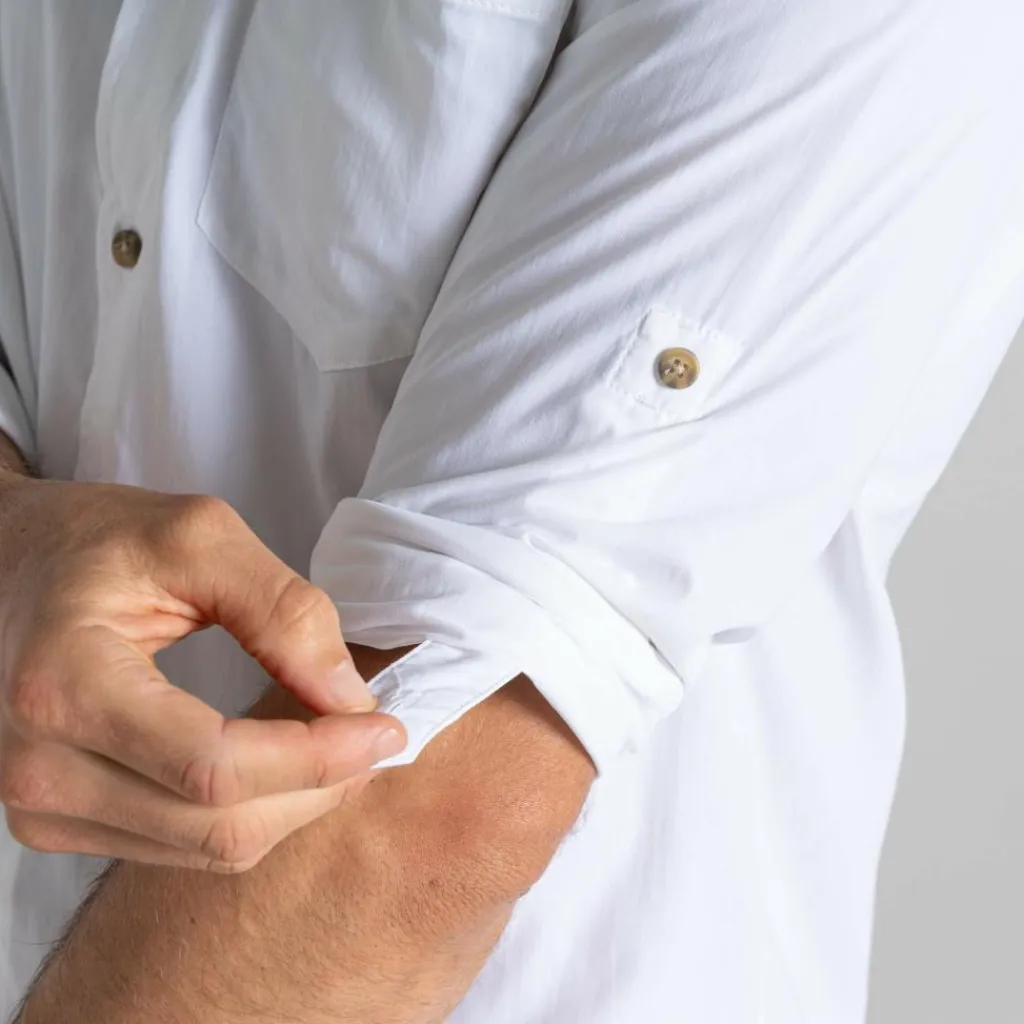 Dieses Hemd sorgt auch bei heißem Sommerwetter für ein angenehmes Tragegefühl, denn das Material ist angenehm leicht und dünn. Außerdem kann es mit schnelltrocknenden und feuchtigkeitsleitenden Eigenschaften auftrumpfen, sodass du auch beim schweißtreibenden Einsatz in der prallen Sonne schnell wieder ein trockenes Gefühl auf der Haut hast. Wird dir dennoch mal zu warm, kannst du einfach die Ärmel aufrollen und schon hast du ein luftiges Kurzarmhemd.