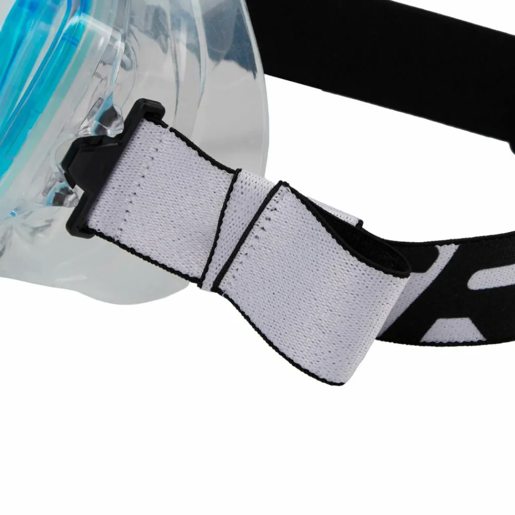 Die Estrella Junior Maske mit weichem Silikonrand dichtet rundum perfekt ab. Ihr verstellbares textiles Brillenband kommt ohne Schnallen aus und lässt sich ohne lästiges Haareziepen über den Kopf ziehen.