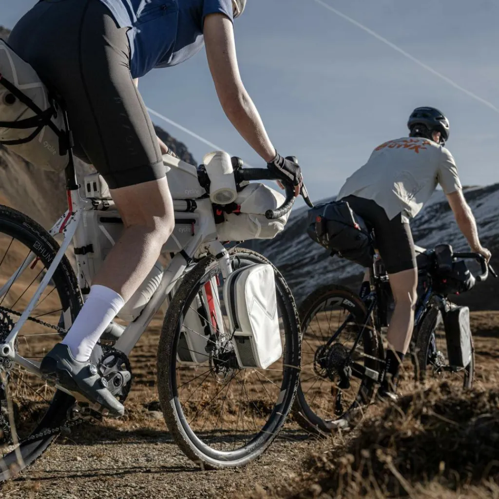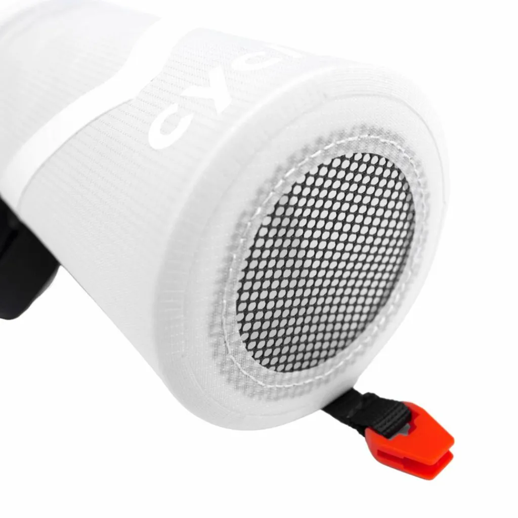 Für den unkomplizierten und schnellen Zugang ist die Tasche oben offen. Die Bauhöhe von 15 cm sorgt aber dafür, dass der Inhalt nicht herausfällt. Am Boden ist Netzmaterial eingearbeitet, das die Tasche sauber hält und eventuelle Feuchtigkeit ablaufen lässt. So ist die Food Pouch auch im Falle des Falles schnell wieder trocken. Die Food Pouch / 02 gehört aufgrund ihres geringen Gewichts und der großen Funktionalität zur Grundausstattung beim Bikepacking. Wer einmal mit einer Food Pouch unterwegs war, möchte sie nicht mehr missen!
