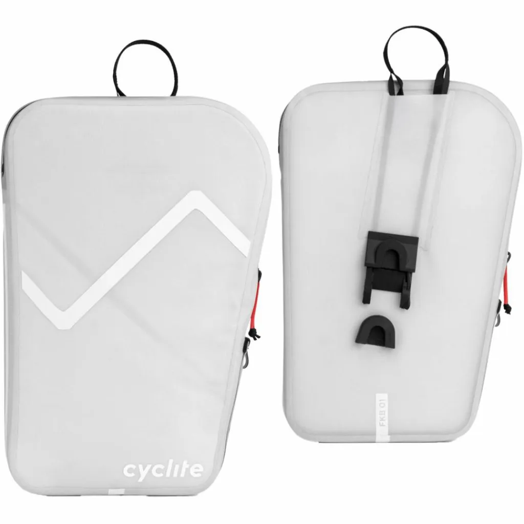 Wenn du also zusätzliches Volumen außerhalb deines Fahrradrahmens benötigst, dabei aber nicht auf Aerodynamik verzichten möchtest, ist das Fork Bag / 01 Set die perfekte Wahl. Das Besondere an diesen Cyclite Taschen ist das flache, keilförmig zulaufende Design. Das macht die Fork Bag / 01 besonders windschnittig und aerodynamisch. Zusammen mit dem tiefen Schwerpunkt hast du weiterhin ein ausgewogenes, unbeeinträchtigtes Fahrgefühl auf deinem Bike. Die stabile Innenstruktur der Fork Bag verhindert ein Ausbeulen – auch bei voller Ausnutzung des Volumens von 3,1 Liter pro Tasche. Hinzu kommt ein wetterfester Reißverschlusszugang zum Hauptfach sowie ein außen angebrachtes Netzfach mit Schnellzugriff für deine kurzen Stopps unterwegs.