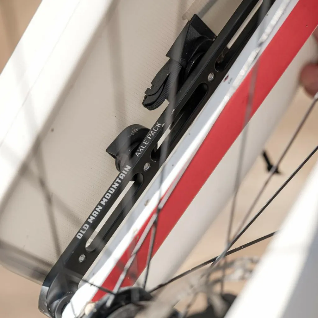 Die Fork Bag / 01 wird über eine schnelle, unkomplizierte und zuverlässige Verriegelung an deiner Gabel befestigt. Das passiert entweder direkt an vorhandenen Schraubgewinden der Gabel. Hast du eine Starr- oder Federgabel ohne Gewinde, lässt sich die Tasche mit der Steckachse am Fahrrad montieren; hierfür wird zusätzlich eine passende Adapterlösung wie zum Beispiel das Axle Pack von Old Man Mountain benötigt. Beide Befestigungsoptionen sind verdreh- und verrutschfest.