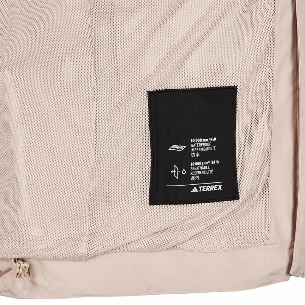 Neben den beiden Einschubtaschen verfügt die Jacke außerdem über eine Brusttasche mit Reißverschluss, die etwas tiefer als gewöhnlich angebracht ist. So drücken die Gegenstände in der Tasche nicht unangenehm auf der Brust. Die versetzten Schulternähte bieten mehr Komfort, wenn du mit einem Rucksack unterwegs bist. Die asymmetrisch geschnittenen, teilelastischen Ärmelbündchen decken auch die Handrücken gut ab und der Schnürzug im Saum verhindert, dass kalter Wind ungehindert von unten in die Jacke gelangen kann. So ist die Regenjacke ein zuverlässiger Begleiter für deine Tageswanderungen, für Städtereisen oder einfach für den verregneten Alltag.