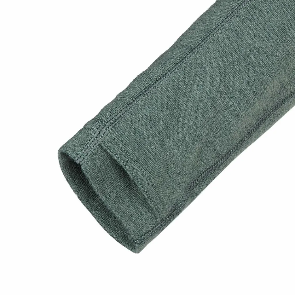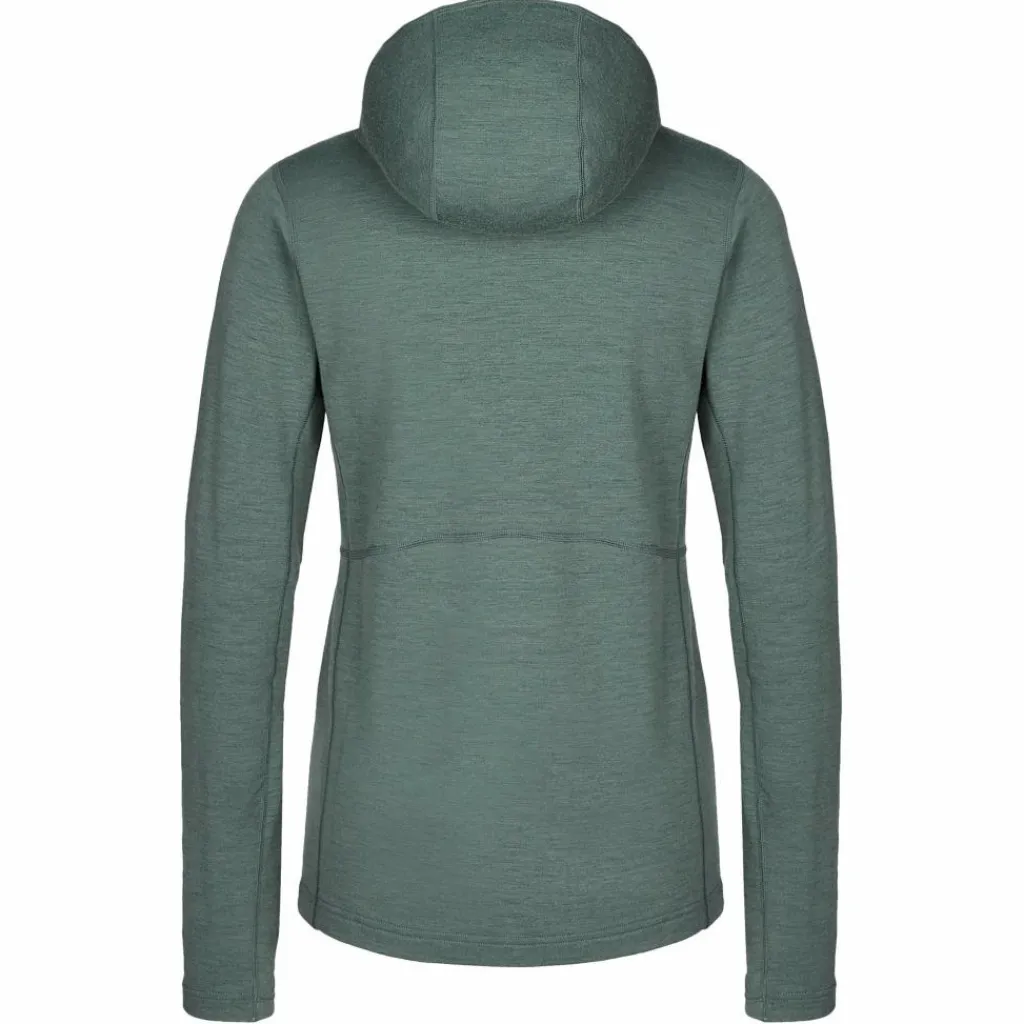 Der Hoodie ist aus Nuyarn hergestellt. Dabei handelt es sich um ein Garn aus feiner Merinowolle, die in einem besonderen Spinnverfahren mit einem Kern aus Nylon versehen wurde. Nuyarn trocknet fünfmal schneller als reine Merinowolle, ist sehr strapazierfähig und hoch elastisch. Gleichzeitig blieben die feuchtigkeitsleitenden, temperaturregulierenden und geruchshemmenden Eigenschaften, die Wolle von Natur aus besitzt, erhalten. So sorgt der Hoodie bei verschiedenen Aktivitätsleveln für volle Bewegungsfreiheit und ein angenehmes Körperklima.