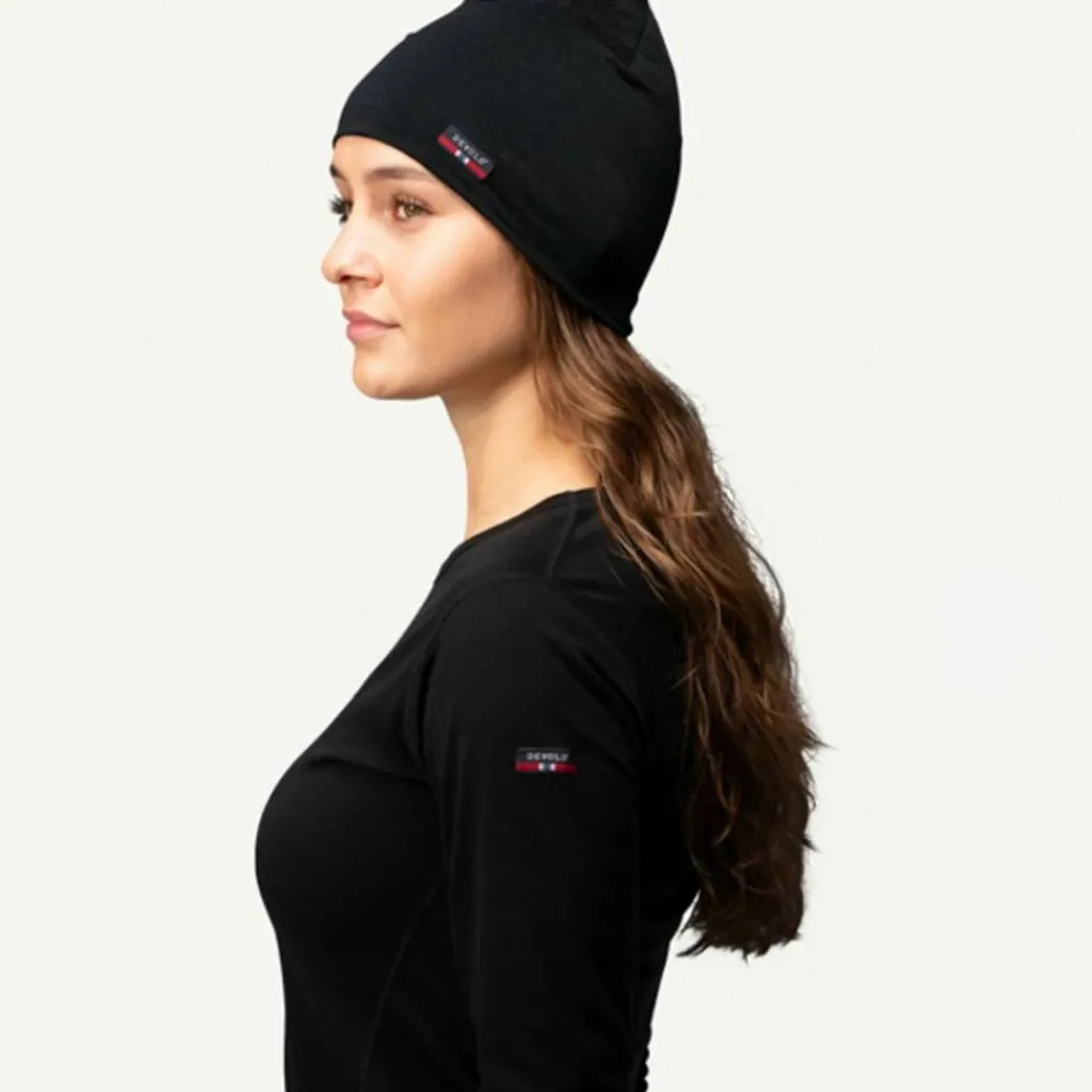 Merinowolle besitzt die praktische Fähigkeit, große Mengen an Feuchtigkeit aufzunehmen, ohne sich nass anzufühlen. Das ist sowohl beim schweißtreibenden Einsatz als auch bei leichtem Regen ein klarer Komfort-Vorteil. Außerdem wirkt Merinowolle temperaturausgleichend, geruchshemmend und antistatisch. So stehen dir beim Absetzen der Mütze nicht die Haare zu Berge. Dank des dünnen, elastischen Materials sitzt die Beanie auch unter Kapuzen und den meisten Helmen sehr bequem.