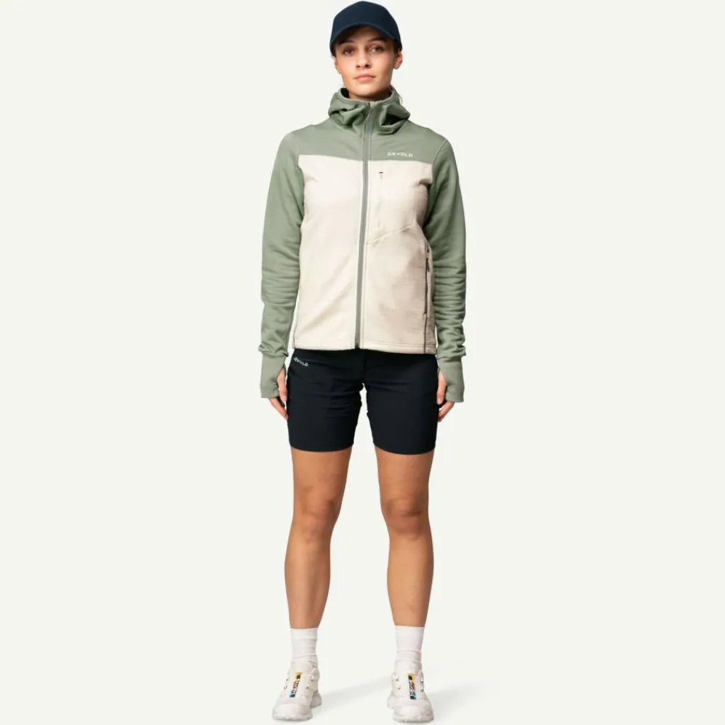Von innen sorgt reine Merinowolle für ein sehr angenehmes Tragegefühl. Mit einer Materialstärke von 210 g/m² bietet dir die Wolljacke einen guten Wärmerückhalt. Die temperaturregulierende Wolle versorgt dich gleichzeitig mit ausgewogenem Trageklima, sodass du nicht überhitzt. Obendrein nimmt die Naturfaser viel Feuchtigkeit auf und ist von Natur aus geruchshemmend. Ideal für längere Wander- und Trekkingtouren.