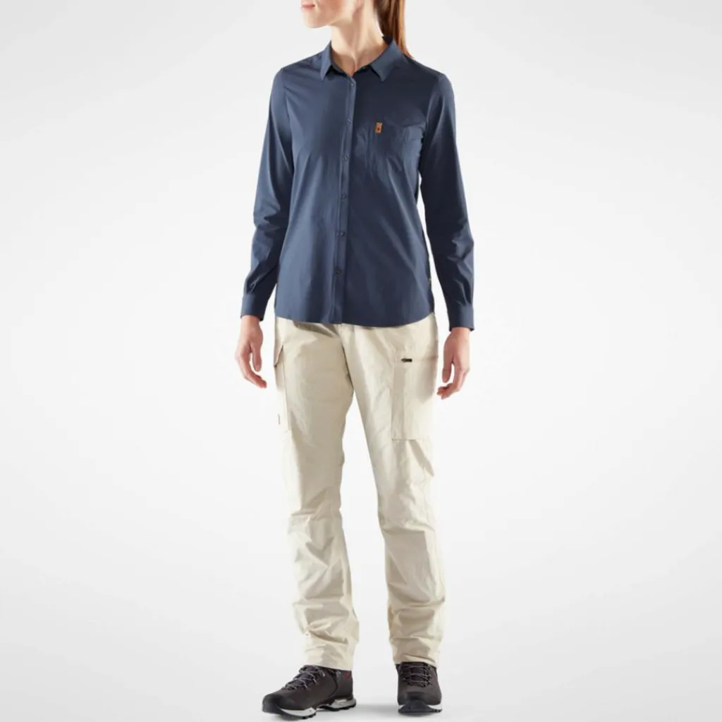 Der Schnitt des Hemdes ist etwas weiter und hat eine gute Passform. Dafür sorgt die Hemdfalte am Rücken. Die Ärmel lassen sich aufrollen und mit einem Knopf befestigen.