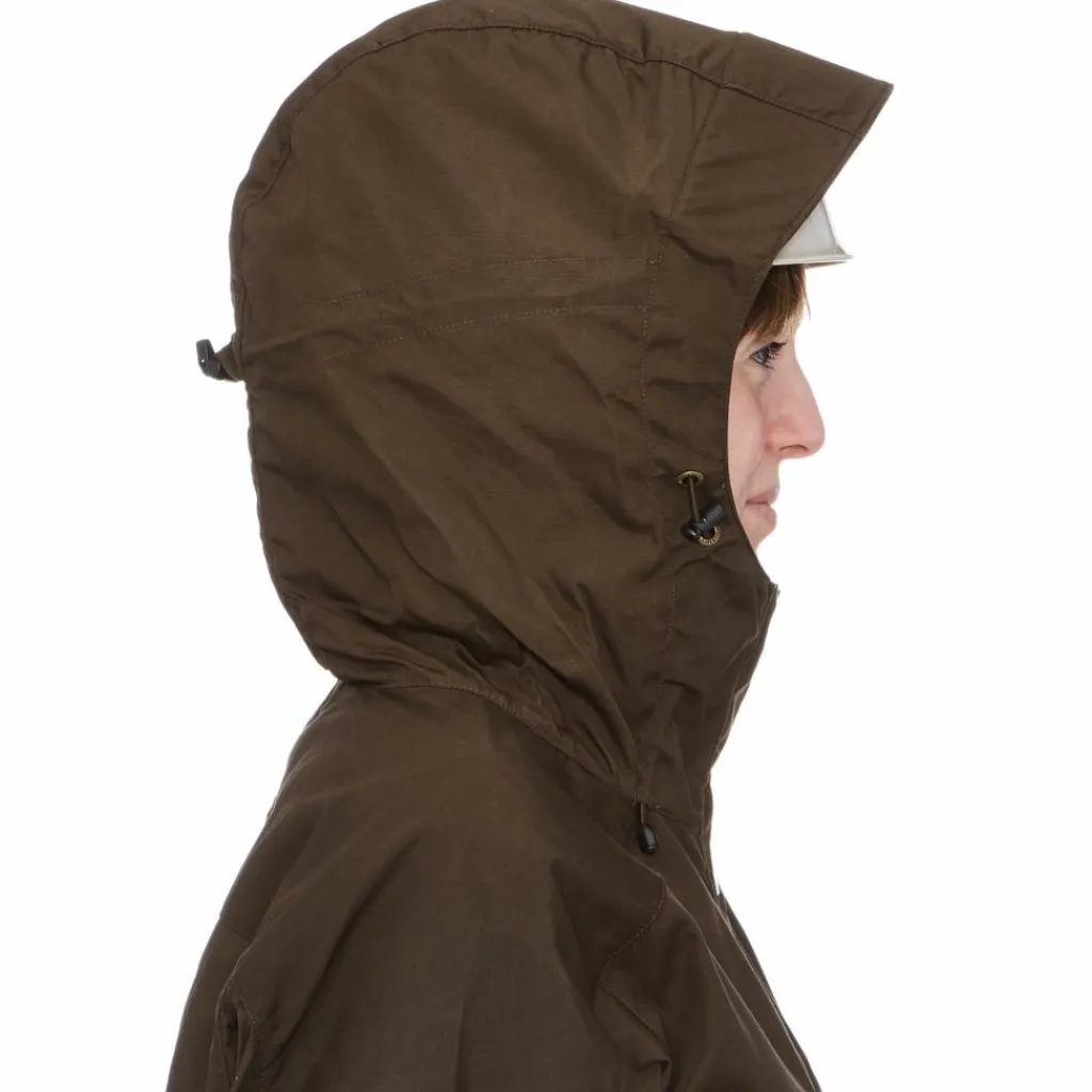 Die Schulterpartie, Kapuze und Rückseite der Ärmel ist aus robustem, mückendichtem G-1000 Original gefertigt. Der Rest der Jacke besteht aus dem sommerlichen, dünneren G-1000 Lite. Beide Materialien sind wind- und leicht wasserabweisend.
