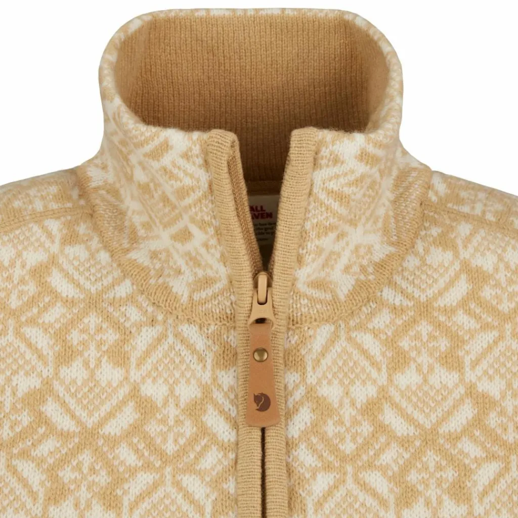 Durch die doppellagige Webart des Jaquard-Strickmusters werden bei diesem Cardigan die guten Isolationseigenschaften der Lammwolle noch einmal verstärkt. Und durch den hohen Stehkragen ist auch dein Hals optimal vor Zugluft und unangenehmer Kälte geschützt. Abgerundet wird das Ganze durch den schlichten Schnitt und das skandinavisch-folkloristische Muster – perfekt für winterliche Waldspaziergänge und gemütliche Hüttenabende vor dem Kamin.