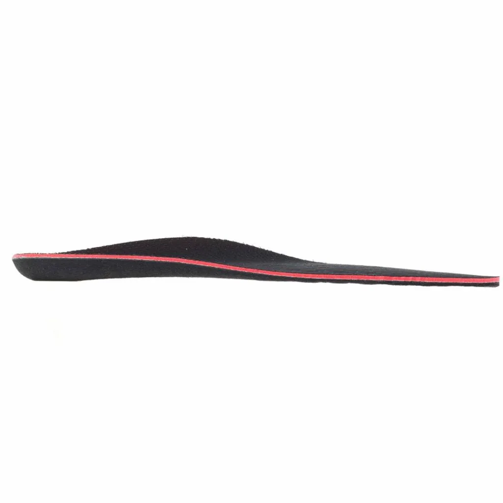 Die Oberfläche besteht aus perforiertem Synthetikgewebe, das besonders schnell trocknet. Zusätzlich sorgt es für bessere Luftzirkulation. Die Zwischenschicht bildet weich dämpfender Schaumstoff, der sich deiner Fußform anpasst und gleichzeitig Stoßabsorbierend wirkt. Die Unterseite wurde aus gefilztem Gewebe bearbeitet und verhindert ein Verrutschen der Sohle im Schuh!