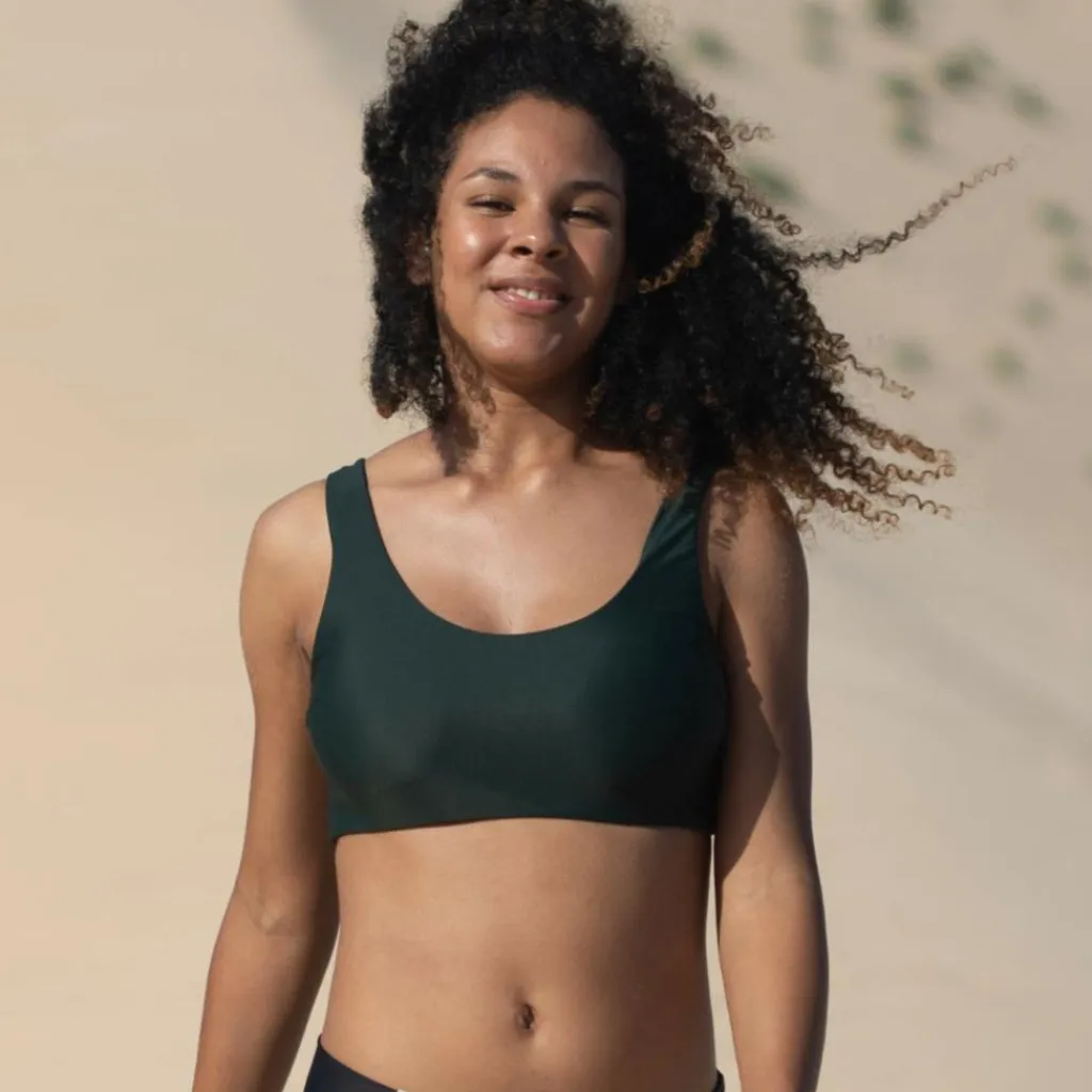 Das Bikini Top Pure Dark Green besticht beim Schwimmen, Stand-up-Paddling Yoga und Fitness mit kurzer Trocknungszeit, hohem Komfort, bequemer Passform und guter Abdeckung sowie wandelbarer Optik.