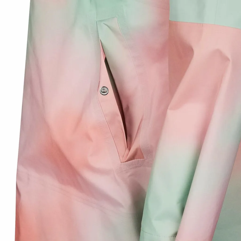 Das Material des Ponchos ist wind- und wasserdicht bei einer Wassersäule von 5.000 mm. Auch die versiegelten Nähte tragen zum Schutz vor Regen bei. Den guten Wetterschutz optimiert die PFC-freie DWR-Imprägnierung, die Nässe bereits an der Oberfläche abperlen lässt. Und dank der Atmungsaktivität genießt du unter dem Poncho zudem ein gutes Trageklima.