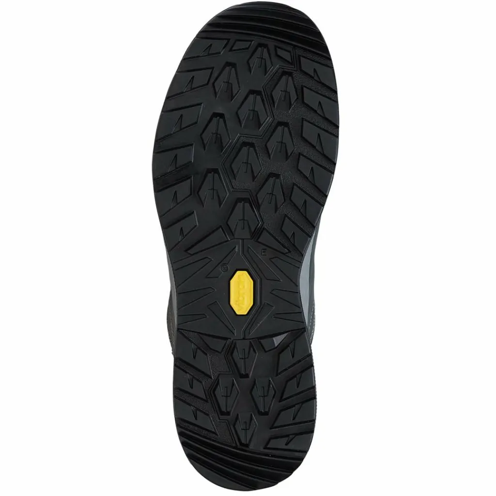Um selbst in steilem Gelände, auf rutschigen oder losen Untergründen den Halt nicht zu verlieren, wird auch weiterhin auf eine Laufsohle von Vibram gesetzt. Diese zeichnet sich nicht nur durch ihre griffige Profilgestaltung aus, sondern auch die eher weiche Gummimischung. Diese verspricht bestmöglichen Grip. Dadurch läuft es sich aber beispielsweise auch auf harten und ebenen Untergründen wie Asphalt oder Beton deutlich angenehmer. Im Zehenbereich setzt die Sohlenkonstruktion zudem etwas weiter oben an, um bei Stolperern das darunterliegende Material zu schützen. Dank ihrer speziellen Profilanordnung ist die Sohle zudem selbstreinigend, die Rillen oder Riefen im Fersen- und Zehenbereich unterstützen außerdem die Abrollbewegung deines Fußes.