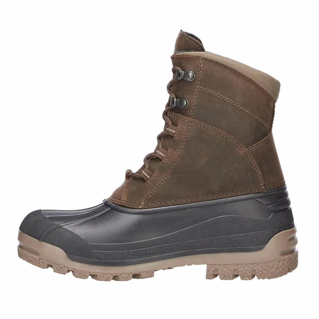 Als Obermaterial kommt stark wasserabweisendes, gewachstes Nubukleder zum Einsatz. Zwar nicht ganz wasserdicht, ist Feuchtigkeit bei den für den Einsatz des Stiefels vorgesehenen Außentemperaturen aber definitiv kein Problem. Ausgestattet ist der hochwertige Canadian Boot übrigens auch mit einem Futter aus echter Lammwolle. Diese hält deine Füße auch bei Temperaturen von bis zu -25°C zuverlässig warm.