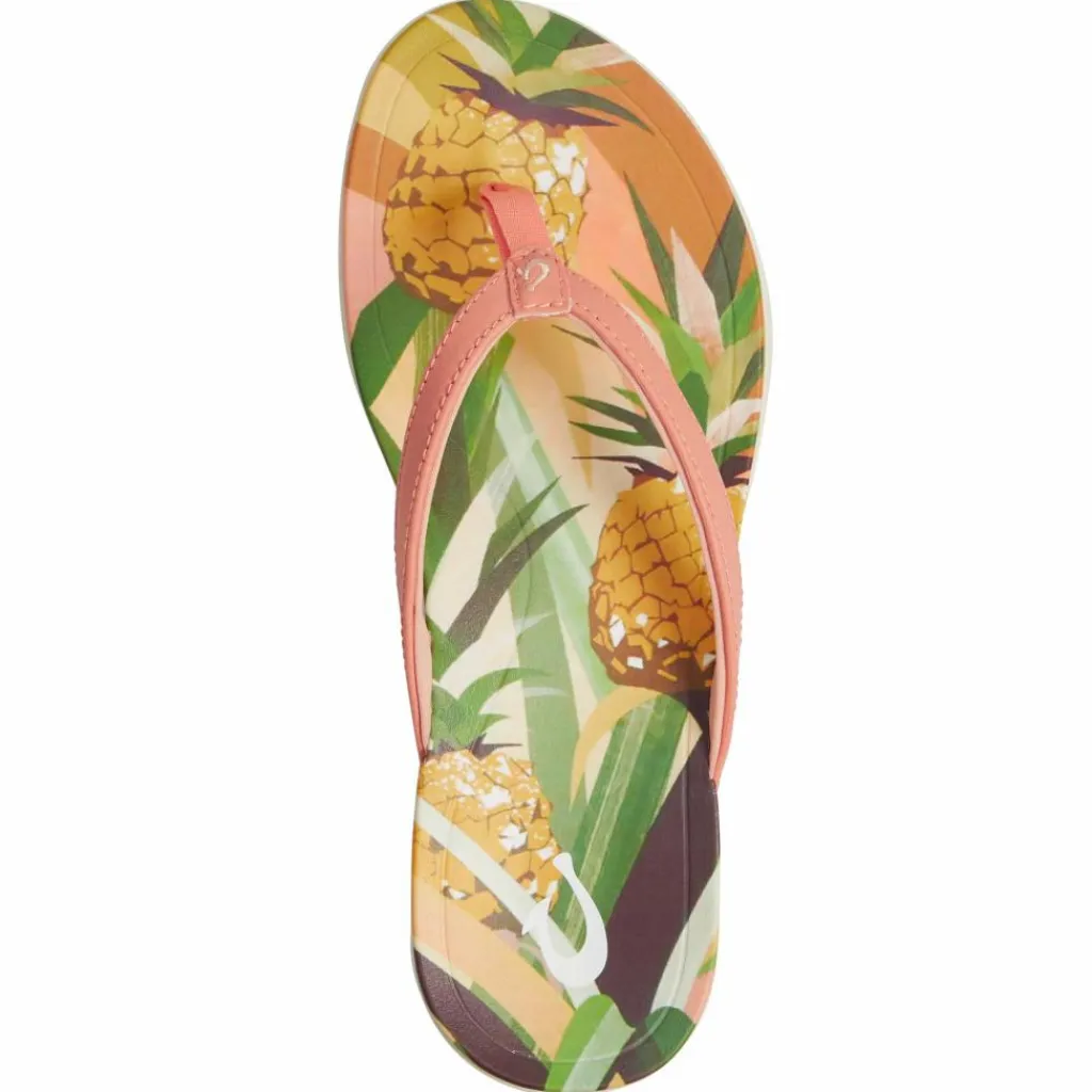 Der Print der Innensohle der hochwertigen Ho’Opio Hau ist ein echter Hingucker! Die schicke Zehenstegsandale mit ihrem farbenfrohen Blumenmuster und den filigranen Riemchen gefällt auf den ersten Blick und überzeugt auf den Zweiten mit hoher Qualität, tollen Materialien und sauberer Verarbeitung.