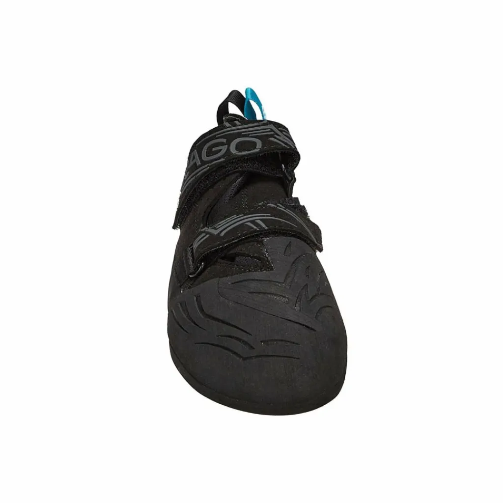 Die XS Grip 2 Sohle von Vibram ermöglicht dir ein reibungsstarkes Stehen, auch auf großen Volumen. Im vorderen Bereich ist die Gummisohle 3,5 mm stark, im Fersenbereich nur dünne 2 mm, wodurch du mehr Flexibilität beim Hooken hast und die Griffbeschaffenheit auch sensibler spüren kannst. Das großflächige, weit hochgezogene Toepatch bietet reichlich Auflagefläche zum Unterhaken.
