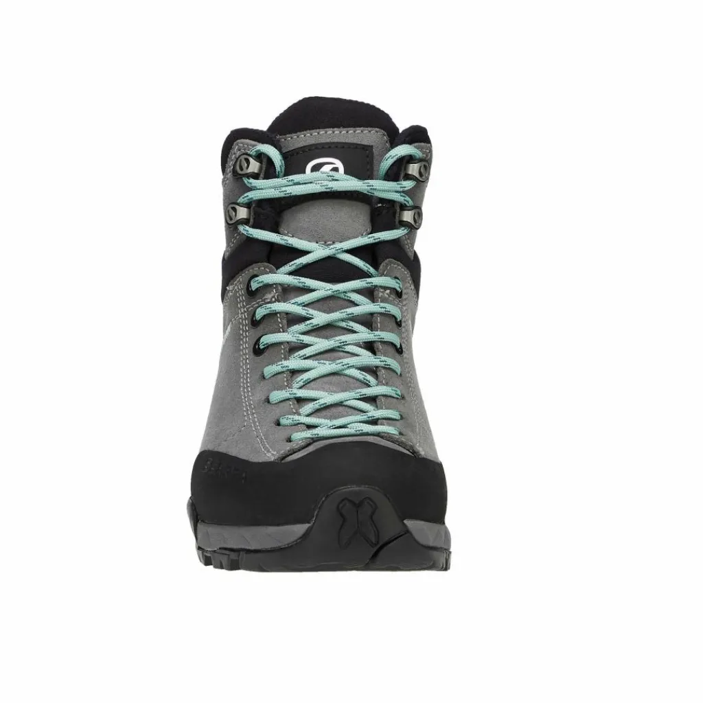 Gefertigt ist er aus robustem Veloursleder. Bei schlechtem Wetter werden die Füße durch eine in den Schuh integrierte Gore-Tex Membran zuverlässig vor Nässe geschützt. Im Schaftbereich ist der knöchelhohe Schuh sehr flexibel gehalten und bequem gepolstert. Für gute Trittsicherheit wurde die Sohle des Mojito Hike GTX leicht versteift und an den Seiten und an der Ferse etwas hochgezogen. Der leichte Sohlenaufbau bietet gute Dämpfung und gewährt mit der griffigen Vibram XS Trek Profilsohle den notwendigen Halt.