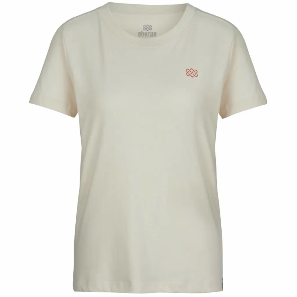 Vorne ziert ein dezenter Logo-Print mit Endlosknoten (ein tibetanisches Glückssymbol) das Shirt. Auf der Rückseite wird es größer und bunter: Hier zieht ein exotisch-schöner Naturprint die Blicke auf sich.