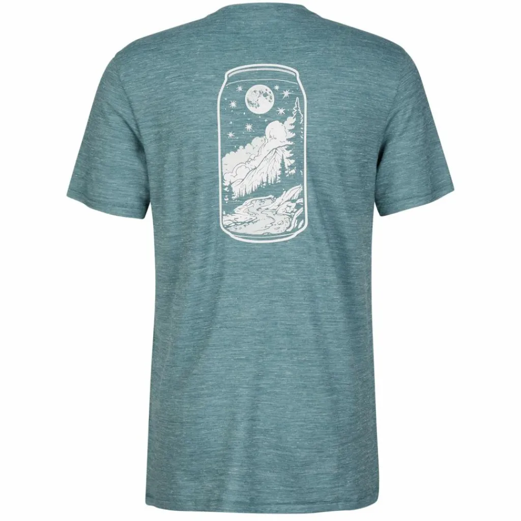 Das T-Shirt ist aus einer Mischung aus Merinowolle, Recycling-Polyester und Hanf gefertigt. Dank der Merinowolle liegt das Shirt angenehm weich auf der Haut. Zudem wirkt die Wolle von Natur aus feuchtigkeits- und temperaturregulierend sowie geruchshemmend. Das Polyester beschleunigt die Trocknungsdauer und sorgt zusammen mit dem Hanf für mehr Stabilität.