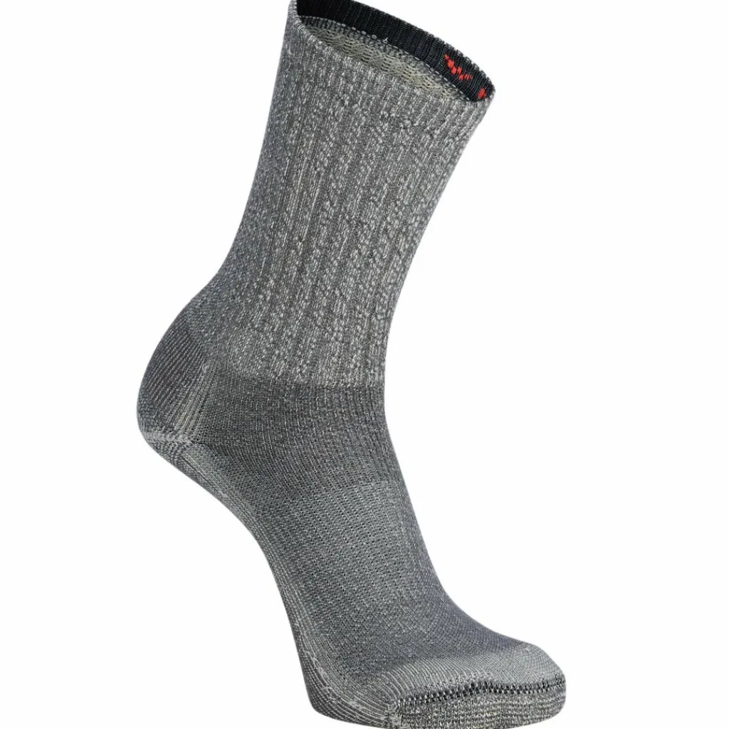 Im komfortablen Merinowoll-Mix kommt nun auch recyceltes Nylon zum Einsatz. Die elastische Verstärkung am Fußgewölbe sorgt für einen festen Sitz. Die flach gestrickte Zehenbox vermeidet unangenehmes Scheuern. Nach wie vor zeigt sich die Merinowolle von ihrer starken Seite: In Schlingen gestrickt, sorgt sie für Wärme (auch feucht), Temperaturregulierung und eine leichte Polsterung. Und sie wirkt geruchshemmend.