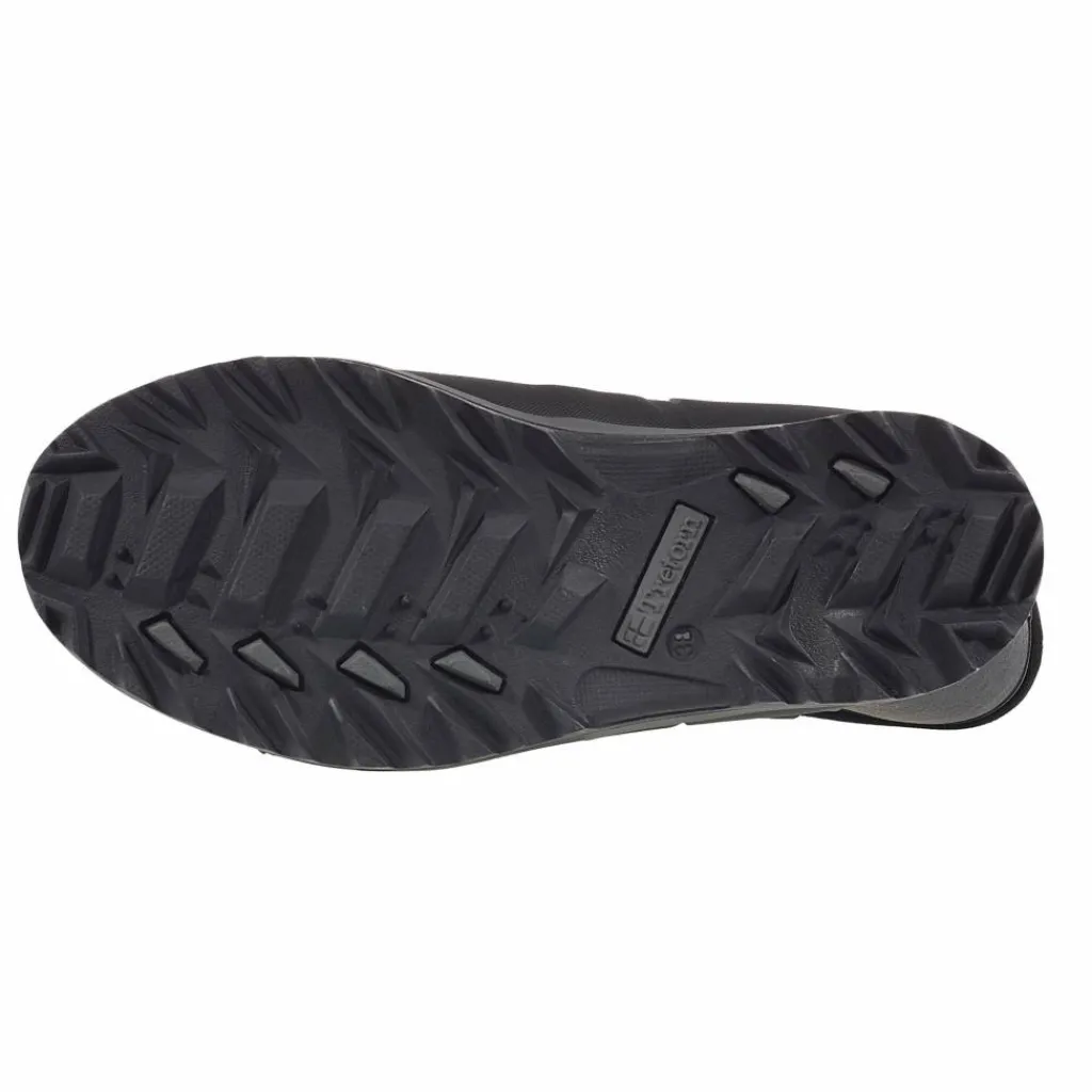 Als Obermaterial kommt PVC-freies Naturkautschuk zum Einsatz. Durch die natürliche Beschaffenheit des Materials ist der Stiefel wasserdicht, ganz ohne Membran. Der Gummistiefel, mit mittelhohem Schaft, verfügt oben über einen Kordelzug. So kannst du die Weite des Schaftes bequem regulieren, damit Wasser oder Schnee nicht in den Stiefel eindringen können.