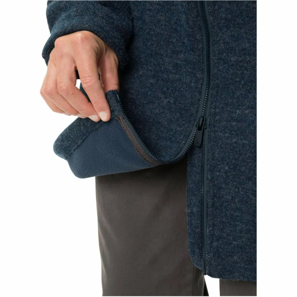 Der Mantel besteht aus einer Mischung aus pflegeleichter Kunstfaser und RWS-zertifizierter Wolle. Im Inneren ist er mit einem weich aufgerauten Fleecefutter aus recyceltem Polyester ausgestattet. Damit du dich ganz einfach auf dein Fahrrad schwingen kannst oder schnell an deine Hosentaschen kommst, ist der Fleecemantel mit einem 2-Wege-Reißverschluss versehen.