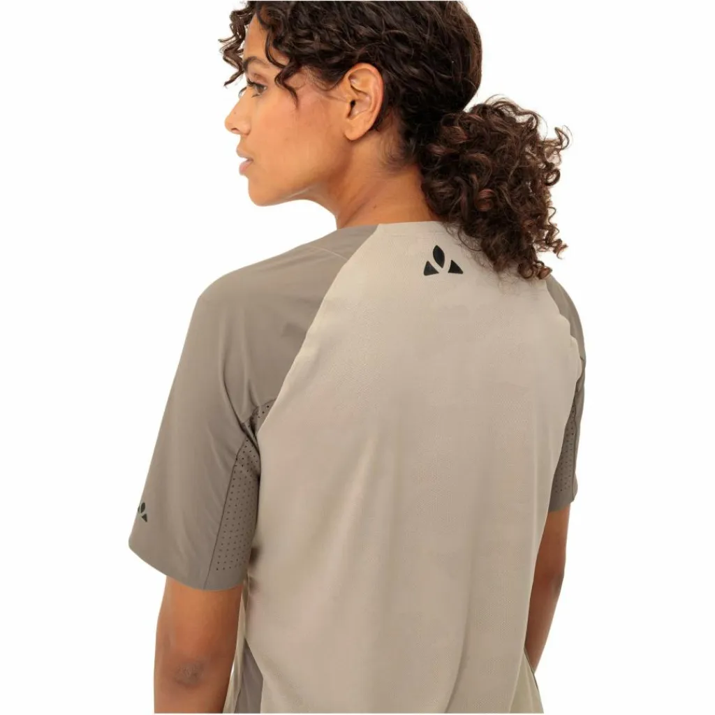 Das robuste Polyamid-Material aus alten Reifen wird in Ärmeln und Schultern eingesetzt. Der andere Teil des Materialmixes am Rumpf besteht aus recyceltem Polyester und ist somit auch sehr nachhaltig. Lasergeschnittene Belüftungslöcher sind in diesem Material unter den Armen integriert. Dank dieser Konstruktion besticht das Trikot durch hohen Tragekomfort, genügend Robustheit und luftiges Feuchtigkeits- sowie Klimamanagement. Das Bike T-Shirt kommt hinten länger geschnitten mit angenehm weichem V-Ausschnitt-Kragen.
