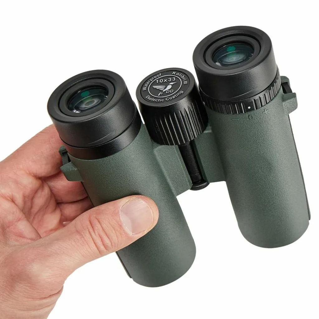 Mit dem Kolibri 8×33 in der Hand werden Naturbeobachtungen lebendig und hautnah erlebbar. Dank der 10-fachen Vergrößerung und dem 33-mm-Objektivdurchmesser ist es zwar etwas lichtschwächer als seine größeren Brüder, dafür aber kompakter und dennoch lichtstark genug, um auch bei schwierigen Lichtverhältnissen ein hervorragendes Bild zu liefern. Mit einem Sehfeld von 106 m verschaffst du dir schnell einen Überblick und kannst auch weit entfernte Objekte gut fokussieren. Trotz seiner beeindruckenden Leistung ist dieses Fernglas erstaunlich leicht und wiegt nur 443 g – ideal, um lange Beobachtungen entspannt zu genießen. Die Naheinstellung ab 3,5 m ermöglicht es dir, sowohl den bunten Falter auf einer Blüte als auch den weit entfernten Leuchtturm detailgetreu zu entdecken.