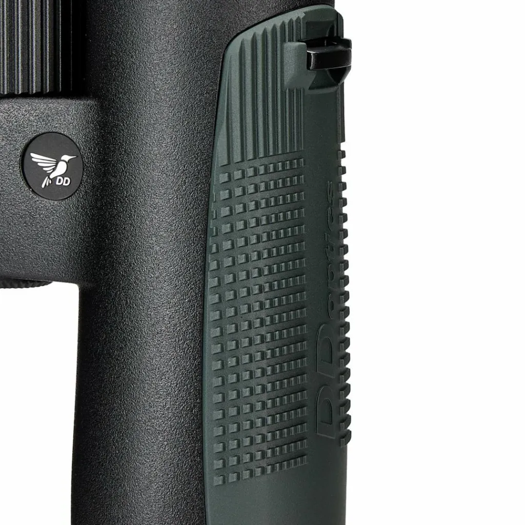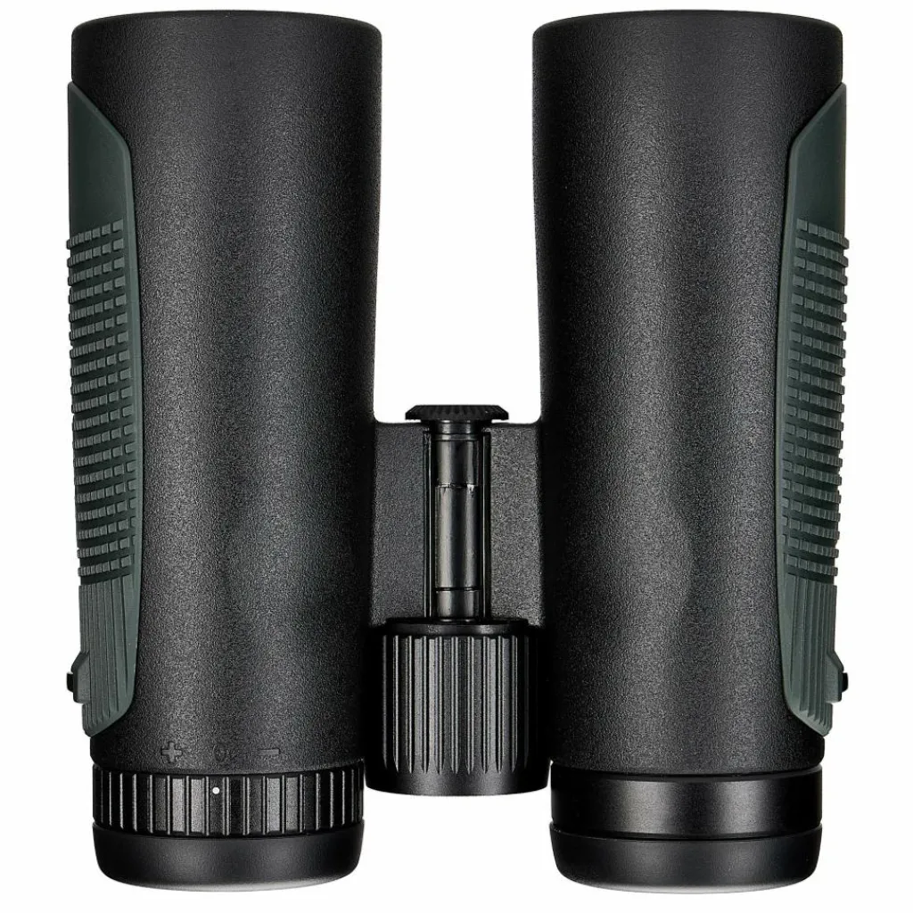 Der Augenabstand von 16,7 Millimetern eignet sich auch für Brillenträger. Mit dem Nahfokus ab 1,5 Metern kannst du Pflanzen, Insekten und feine Strukturen aus kurzer Distanz beobachten. Die griffige Gummiarmierung mit farbigen Seitenpads liegt auch bei Kälte oder Nässe sicher in der Hand.