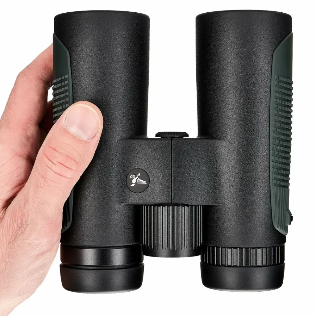 Der Augenabstand von 18,4 Millimetern eignet sich auch für Brillenträger. Mit dem Nahfokus ab 1,5 Metern kannst du Pflanzen, Insekten und feine Strukturen aus kurzer Distanz beobachten. Die griffige Gummiarmierung mit farbigen Seitenpads liegt auch bei Kälte oder Nässe sicher in der Hand. Dabei kommt das etwas größere Gehäuse gegenüber der HDS-Serie auch größeren Händen entgegen. Für den Transport steht dir eine gepolsterte Umhängetasche und ein bequemer Neoprengurt von Niggeloh zur Verfügung.
