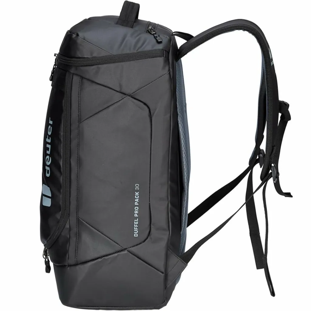 In gewohnter Deuter Manier ist auch der Duffel Pro Pack 30 vorbildlich, was das Thema Nachhaltigkeit betrifft. Denn er ist aus recyceltem Polyester und ohne Einsatz von PFAS hergestellt. Zudem ist der Kofferrucksack bluesign-zertifiziert und klimakompensiert.