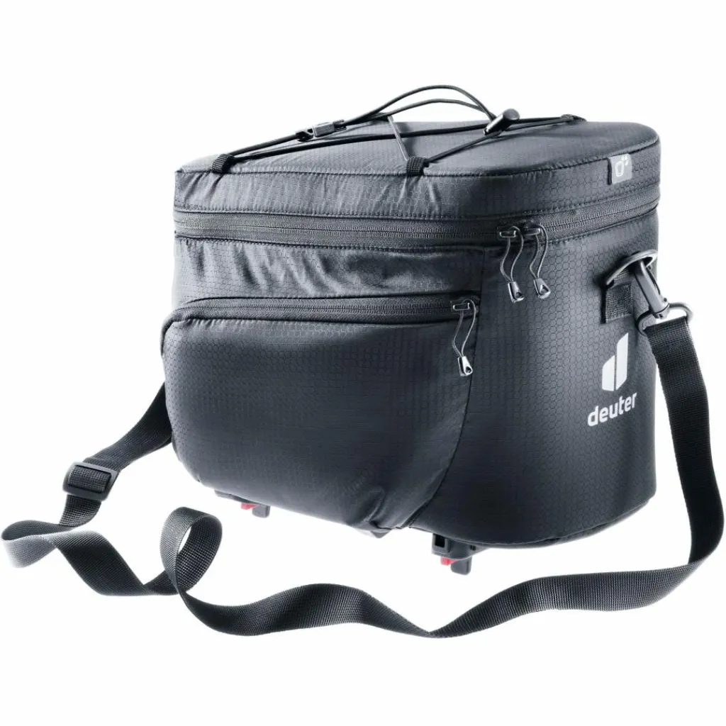 Die Fahrradgepäckträgertasche ist ganz einfach mit dem Klickfix-System UniKlip 2 fixierbar. Das Hauptfach mit umlaufendem Reißverschluss bietet ausreichend Platz für Wechselkleidung, Schlauch, Tools und Riegel. Neben einem Innenfach, sorgen auch seitliche Reißverschlusstaschen und ein elastischer Kompressionszug auf der Oberseite der Gepäckträgertasche für zusätzliche Verstau- und Befestigungsmöglichkeiten. Eine abnehmbare Regenhülle schütz den Inhalt vor Nässe und der abnehmbare Schultergurt ermöglicht das bequeme Schultern der Tasche.