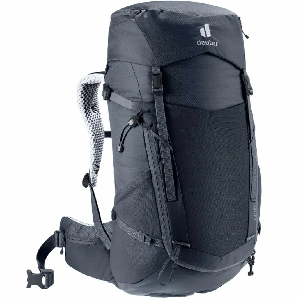 Wie auch sein Vorgänger punktet der neue Futura mit einem elastischen Federstahlrahmen, der das Gewicht des Rucksacks auf deine Hüften überträgt und so für größtmöglichen Tragekomfort sorgt. Das Rückenpolster geht nahtlos in den Hüftgurt über, vermeidet dadurch Druckpunkte und schmiegt sich weich an deine Hüften an. Und dank der ergonomischen Form der ActiveFit Schultergurte macht der Rucksack auch auf bewegungsintensiven Touren – zum Beispiel beim Einsatz von Trekkingstöcken – jede deiner Bewegungen problemlos mit.