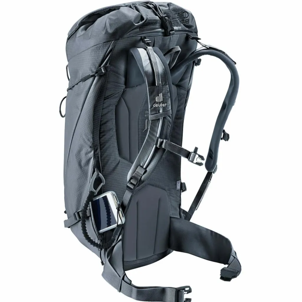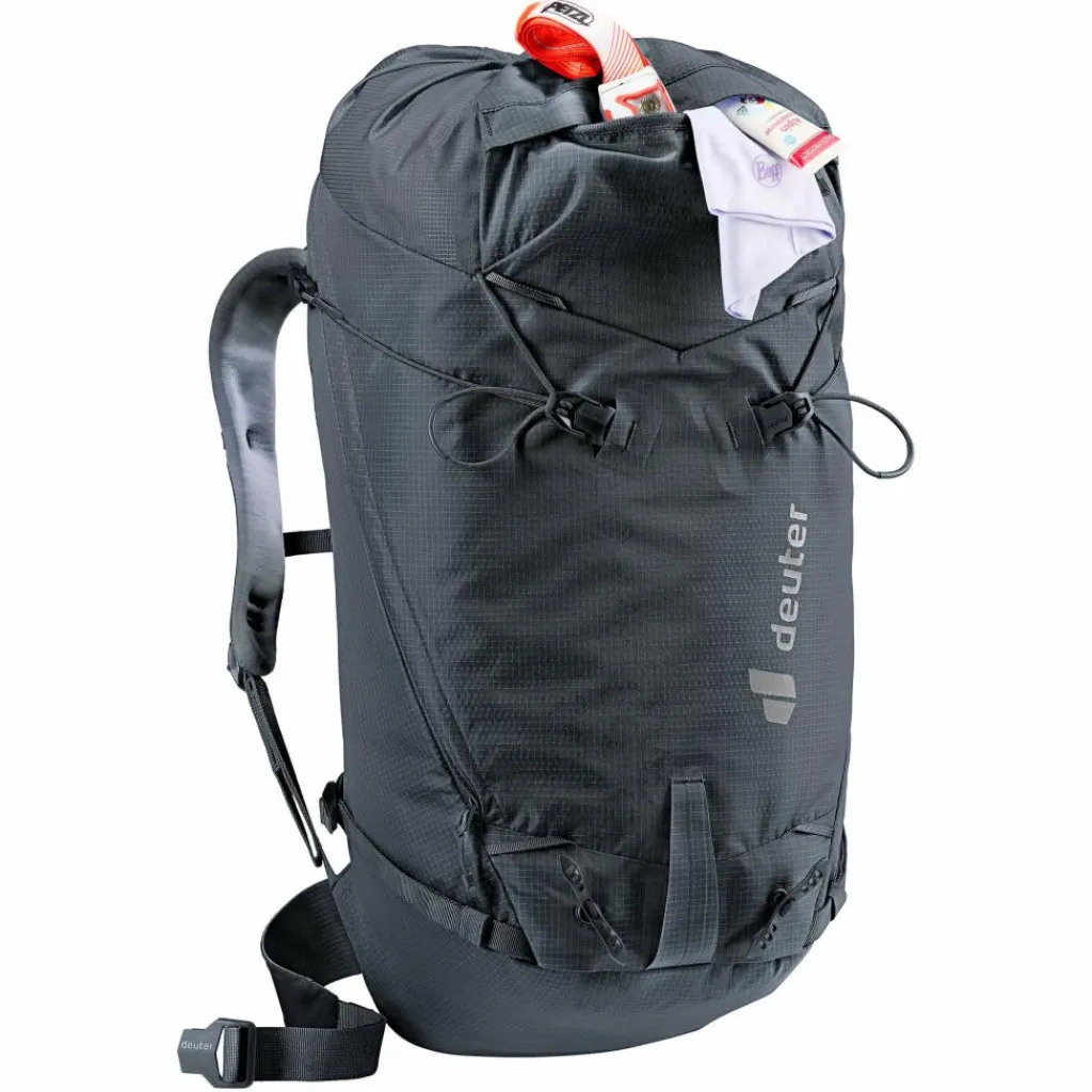 Der schmale Hüftgurt, das abnehmbare Helmnetz, die praktischen Befestigungsschlaufen, die beidseitige Pickelhalterung und Seilfixierung sorgen nicht nur für ein herausragendes Verhältnis von Tragekomfort zu Gewicht, sondern ermöglichen auch das Tragen eines Klettergurtes und bieten damit funktionale Flexibilität im Einsatz des Rucksacks.