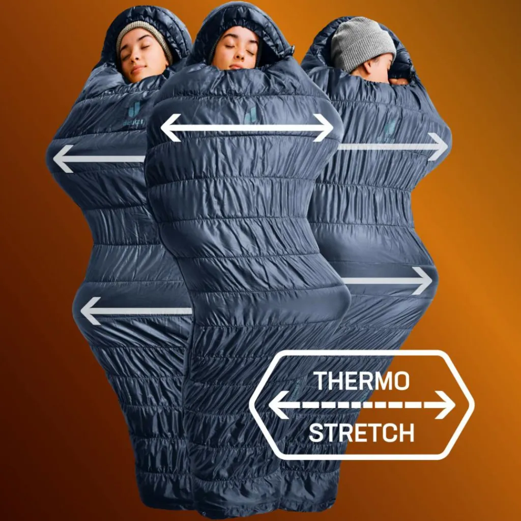 Das Innen- und Außenmaterial ist, wie nahezu alle Bestandteile des Schlafsacks, aus 100 % recyceltem Polyester. Die elastischer ThermoStretch-Konstruktionsnähte, die 360°-Verteilung der High-Loft Hollowfibre Füllung und die Schindelkonstruktion mit 1,3-facher Überlappung sorgen für angenehmes Wärmeklima im Schlafsack. Durchdachte Details wie Klemmschutz am Reißverschluss, ergonomische Fußkonstruktion sowie das robuste, leistungsfähige Obermaterial machen den Schlafsack zum leichten, funktionalen Begleiter in den Bergen.