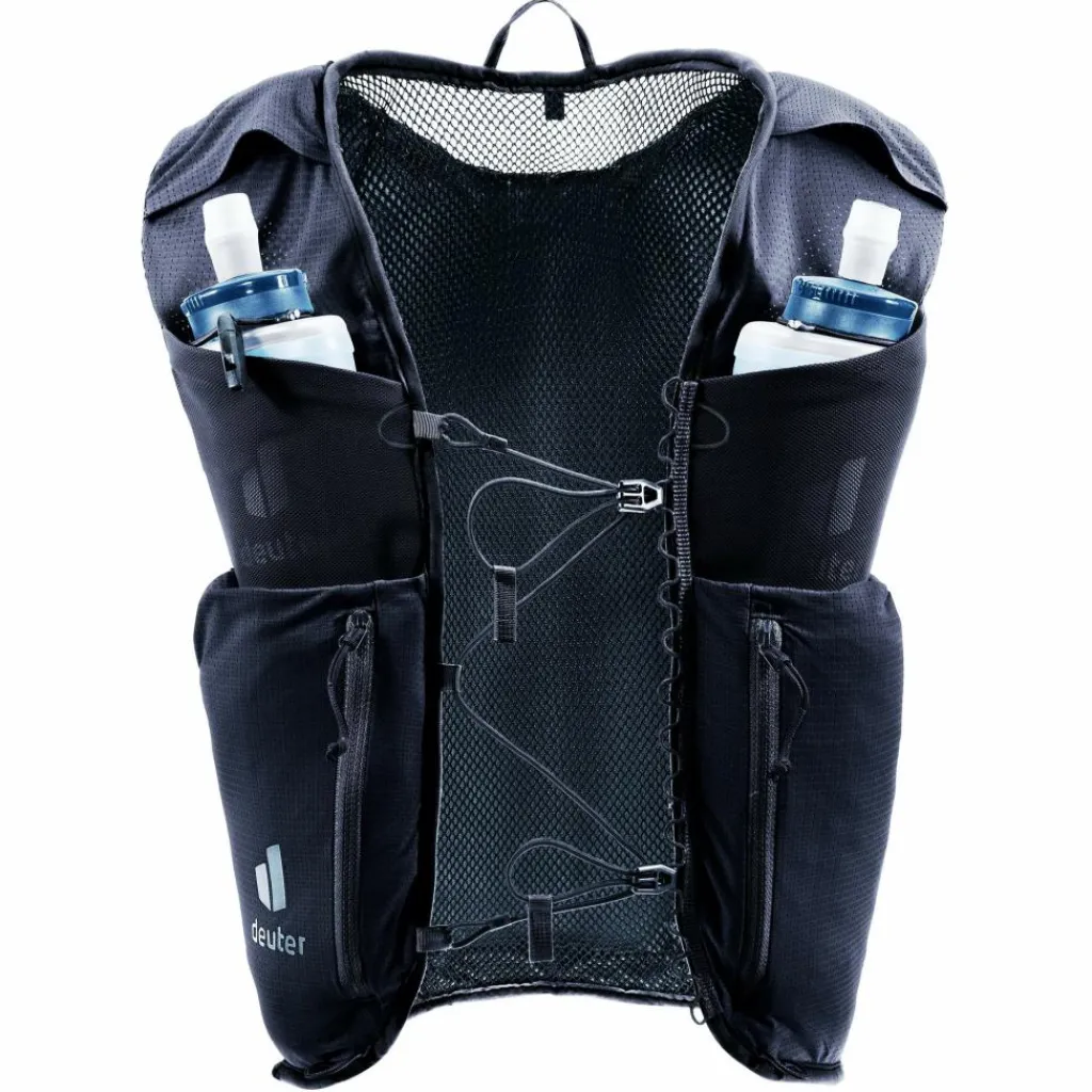 Die enge Passform und das atmungsaktive Stretch-Material der bluesign Product Laufweste schmiegen sich reibungslos an. Die elastische Brustgurt-Konstruktion lässt sich individuell verstellen und ermöglicht nicht nur einen ungestörten Bewegungsablauf, sondern auch freies Atmen bei jeder Intensität. Modulare elastische Befestigungskordeln zur Kompression oder Befestigung z.B. von Stöcken, vier Taschen an jedem Schulterträger und Steckfächer am Rücken verwandeln die Weste in ein ausgeklügeltes, gut sortiertes Raumwunder für Trail Runner.