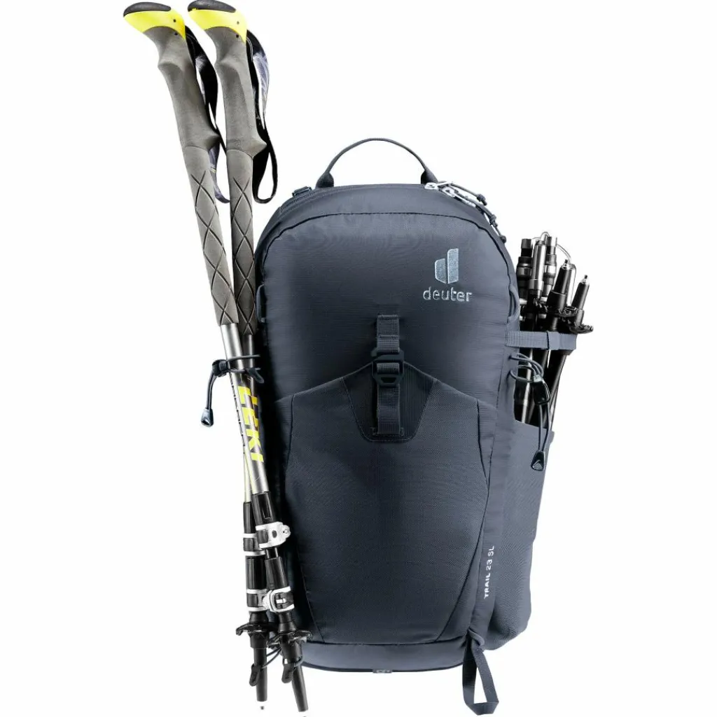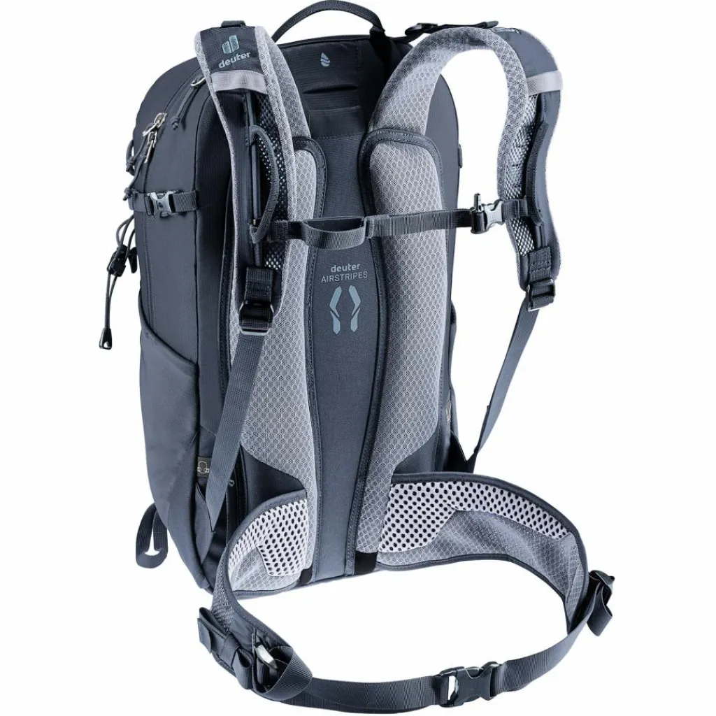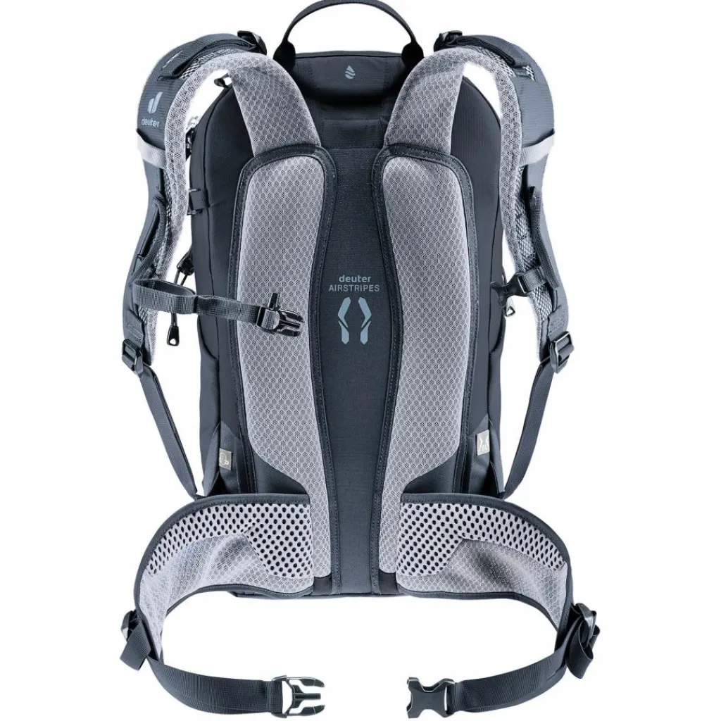 Das Airstripes Rückensystem mit geringer Rückenauflage und großen Belüftungskanälen sowie die perforierten Schulterträger und Hüftflossen sorgen für optimale Luftzirkulation, körpernahe Gewichtsverteilung und damit einen kompakten Sitz in jedem Terrain. Dank Fixierungen an den Schulterträgern sind die Karabiner des Klettersteigsets stets griffbereit. Zudem sind Ausrüstungsgegenstände und Material dank großer Rundbogenöffnung mit Reißverschluss, elastischer Frontstecktasche und Seitentaschen schnell zur Hand.