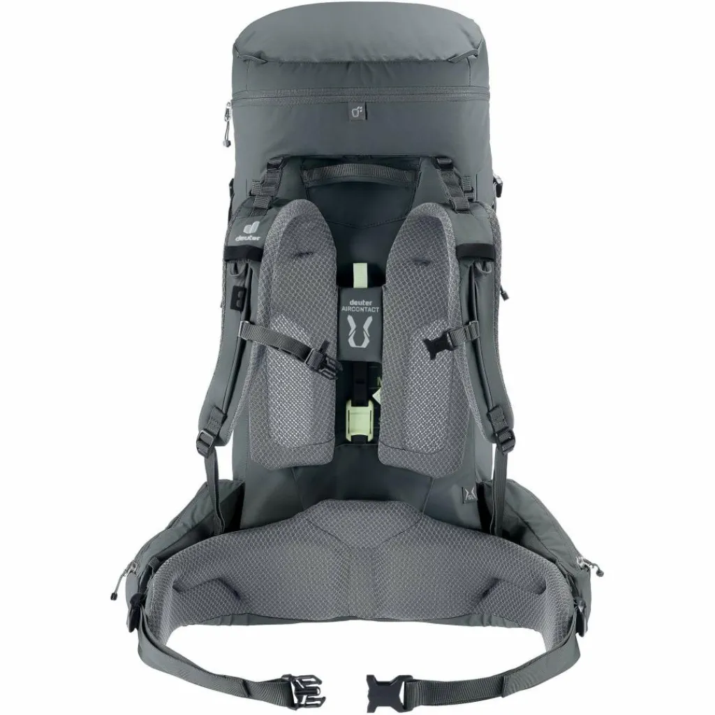 Wie von Deuter gewohnt, steht auch beim neuen Aircontact Core der Tragekomfort an oberster Stelle. Dafür sorgen nicht zuletzt zwei robuste Aluminiumstreben, die das Gewicht dank der Y-förmigen Ausrichtung optimal auf die Hüften übertragen. Damit dein Rücken selbst auf schweißtreibenden Touren bestes Klima genießt, ist das Tragesystem mit großen Belüftungskanälen und atmungsaktivem Mesh ausgestattet. Und für die optimale Passform lässt dich die Rückenlänge dank Deuters neuem VariClick-System in nur wenigen Sekunden auf deine Größe anpassen.