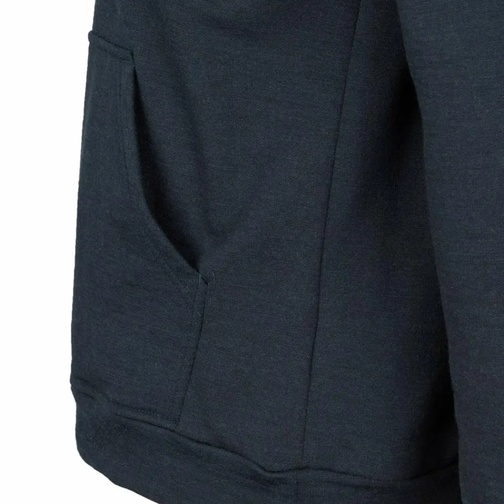 Die Innenseite ist aus reiner, extrafeiner Merinowolle (Materialstärke 210 g/m²) gefertigt, die besonders weich auf der Haut liegt. Zudem wirkt Wolle von Natur aus temperaturregulierend und geruchshemmend. Für die Außenseite wurde Merinowolle mit Polyamid kombiniert. Hierdurch wird die Strapazierfähigkeit des Hoodies erhöht und es kommt es nicht so schnell zu Abrieb, wenn du mit einem Rucksack unterwegs bist. Zudem wurde die Außenseite mit Aquaduct behandelt. Aquaduct ist eine stark feuchtigkeitsleitende Ausrüstung, die eine ähnliche Wirkung wie ein absorbierender Docht hat. Dadurch kann entstehende Körperfeuchtigkeit noch schneller nach außen transportiert werden. Zurück bleibt ein angenehm trockenes Tragegefühl.