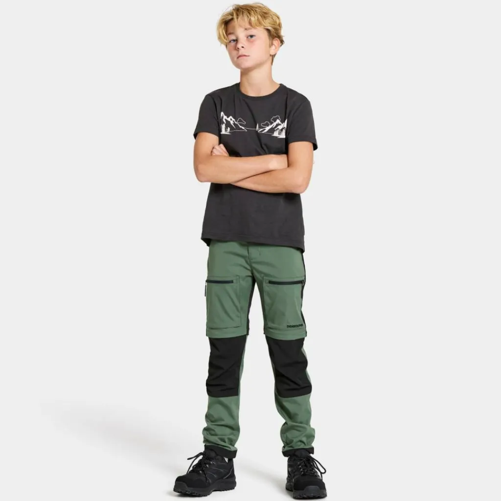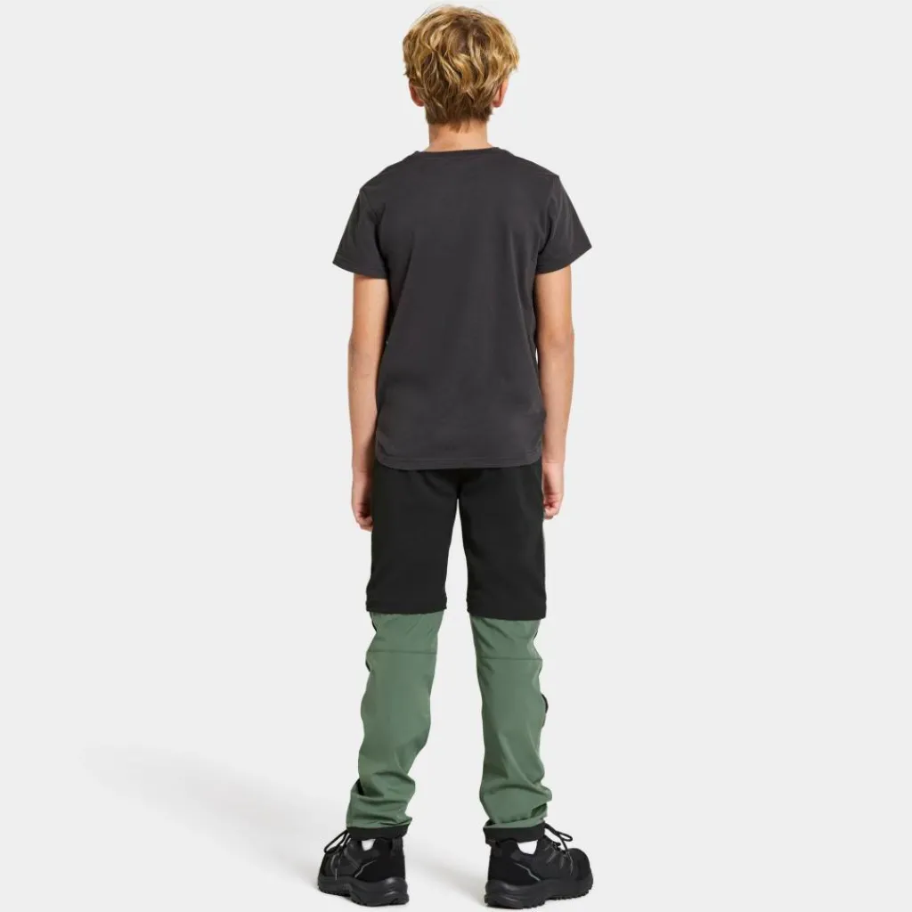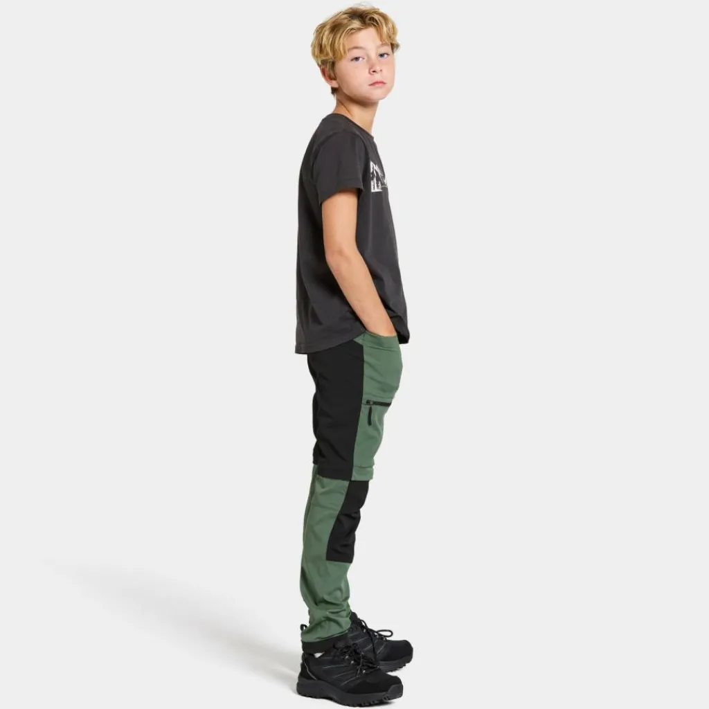 Hergestellt ist die funktionelle Hose aus Polyester und Sorona Polyester, das anteilig aus einem biobasierten Stoff besteht. Das Gewebe ist damit feuchtigkeitsleitend und verfügt über die nötige Strapazierfähigkeit für diverse Outdoor-Einsätze. Zudem ist das Material wasserabweisend und sehr elastisch, sodass deine Kids optimalen Komfort genießen. Im Kniebereich und am Gesäß kommt ein besonders strapazierfähiges sowie dehnbares Material zum Einsatz für die nötige Balance aus Robustheit und Bewegungsfreiheit.