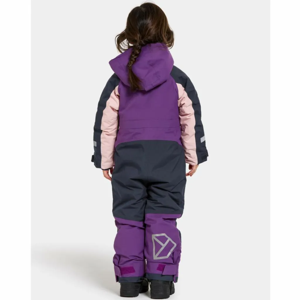 Die bequeme Passform mit vorgeformter Kniepartie lässt genügend Bewegungsspielraum zum Toben. Auf Taillenhöhe befindet sich ein Schnürzug, mit dem die Weite nach Wunsch angepasst werden kann. Vorne und hinten an den Beinen, an den Ärmeln und an der Kapuze verfügt der Schneeanzug über großflächige, reflektierende Designelemente. In einer der Einschubtaschen befindet sich außerdem eine Öse, an der ein Reflektor befestigt werden kann, ohne dass Löcher im Shellmaterial entstehen.