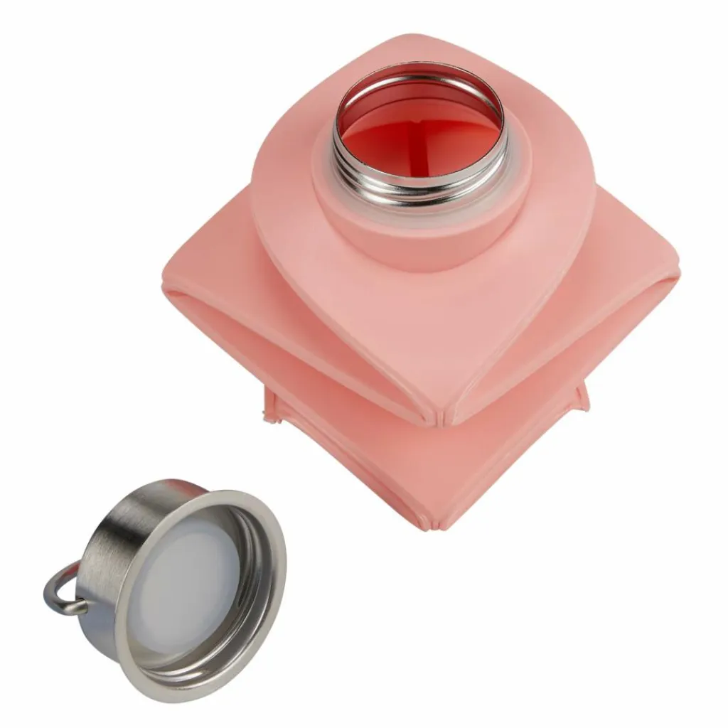 Du wirst hier vergeblich nach Silikon, Gerüchen oder schlechtem Geschmack im Wasser suchen! Selbst heißes Wasser kann eingefüllt werden, ohne den Geschmack zu beeinträchtigen. Ein Edelstahldeckel mit Schraubverschluss sorgt dafür, dass alles im Gepäck trocken bleibt. Er gewährleistet auch, dass die Trinkflasche im gefalteten Zustand ihre Form behält. Am Henkel kannst du die Flasche am Gepäck sichern – befüllt oder gefaltet.