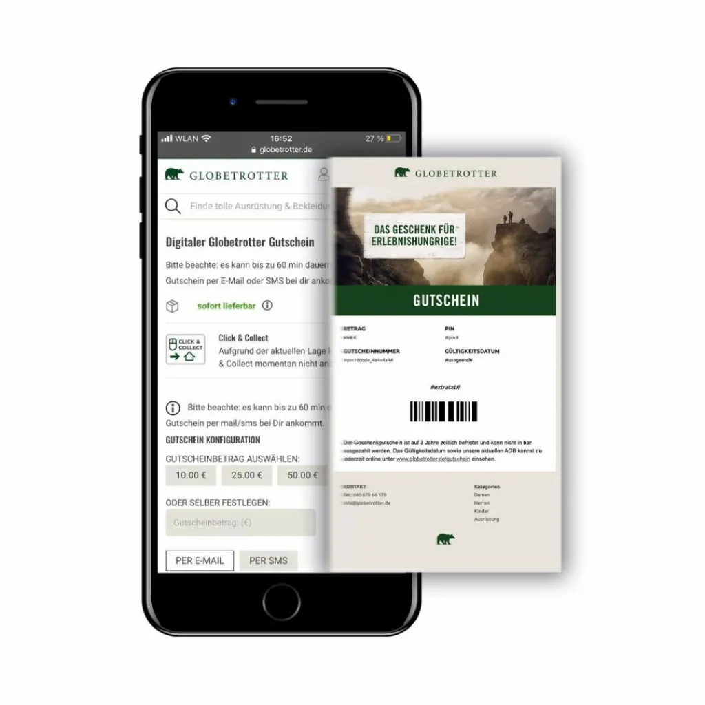 Unsere Geschenkgutscheine sind in allen Globetrotter Filialen und in unserem Onlineshop erhältlich. Einlösen kannst du sie online, in den Filialen und am Telefon unter Angabe der 16-stelligen Gutscheinnummer und des 5-stelligen PIN Codes. Ein eventuell verbleibendes Rest-Guthaben verbleibt auf dem Geschenkgutschein und kann jederzeiteingesehen werden.