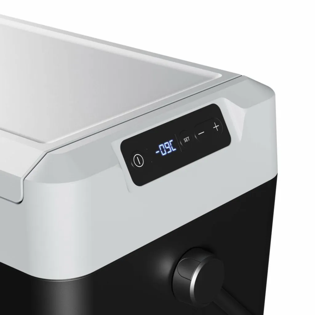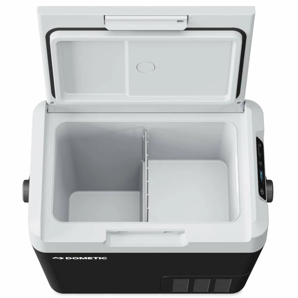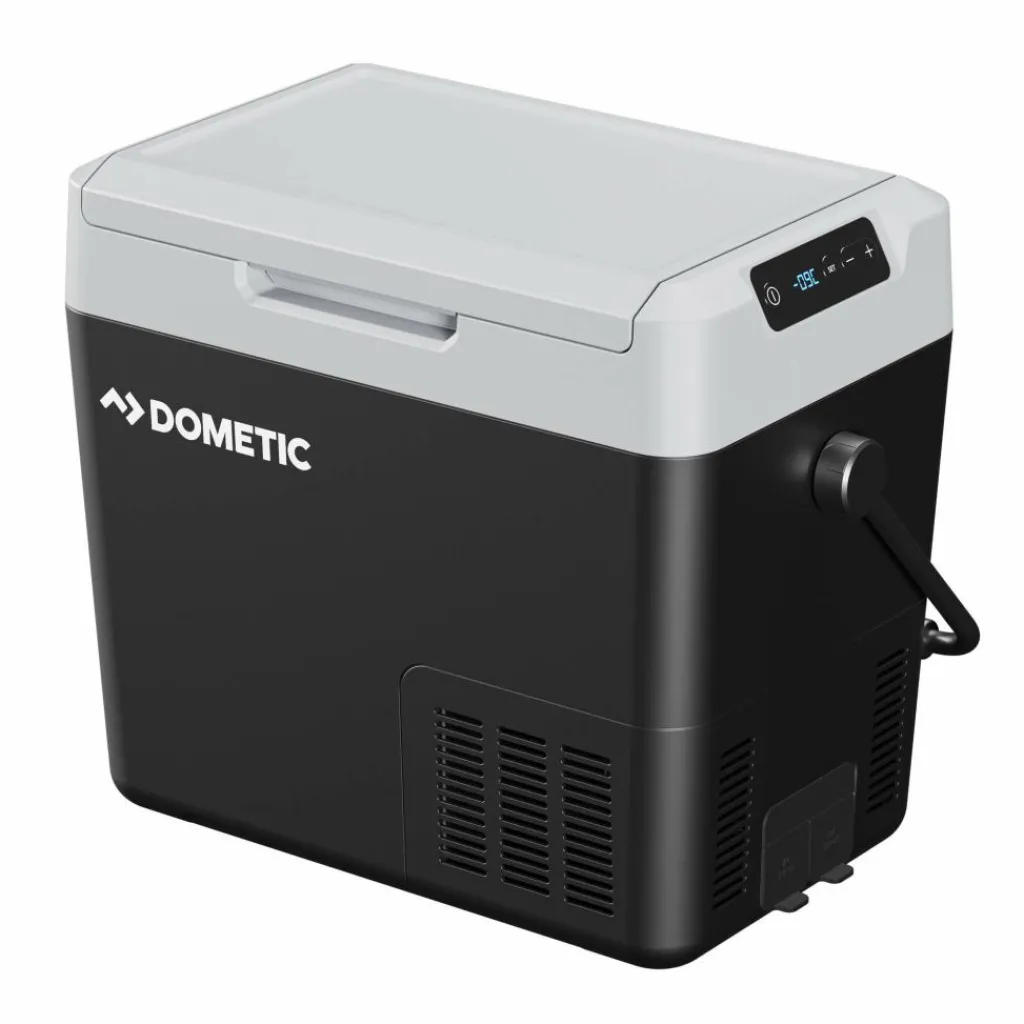 Die Dometic CFF18 ist eine leichte Kühlbox, die zu Hause, auf dem Campingplatz oder unterwegs im PKW oder Camper deine Lebensmittel gekühlt oder sogar gefroren hält. Mit einem Volumen von 19 Litern bietet sie Platz für vier 1,5-Liter-Trinkflaschen oder 24x 0,33-Liter-Getränkedosen. Auch Lebensmittel können prima gelagert werden. Ein Trenngitter aus pulverbeschichtetem Metall erleichtert die Organisation des Kühl- oder Gefrierguts. Die gewünschte Temperatur lässt sich von +20 °C bis -18 °C einstellen. Am seitlich installierten Display kann die Temperatur jederzeit abgelesen werden. Die Kunststoffinnenverkleidung mit abgerundeten Ecken erleichtert die Reinigung nach der Nutzung.