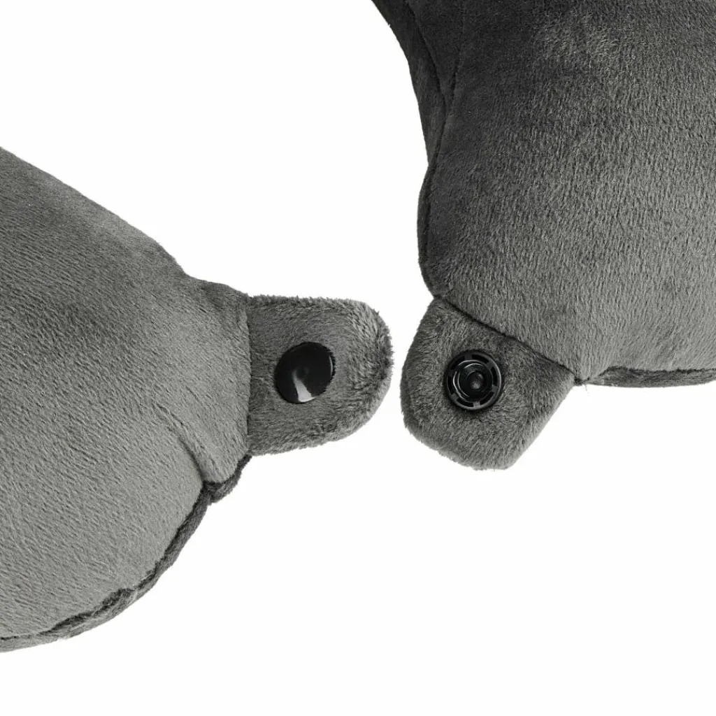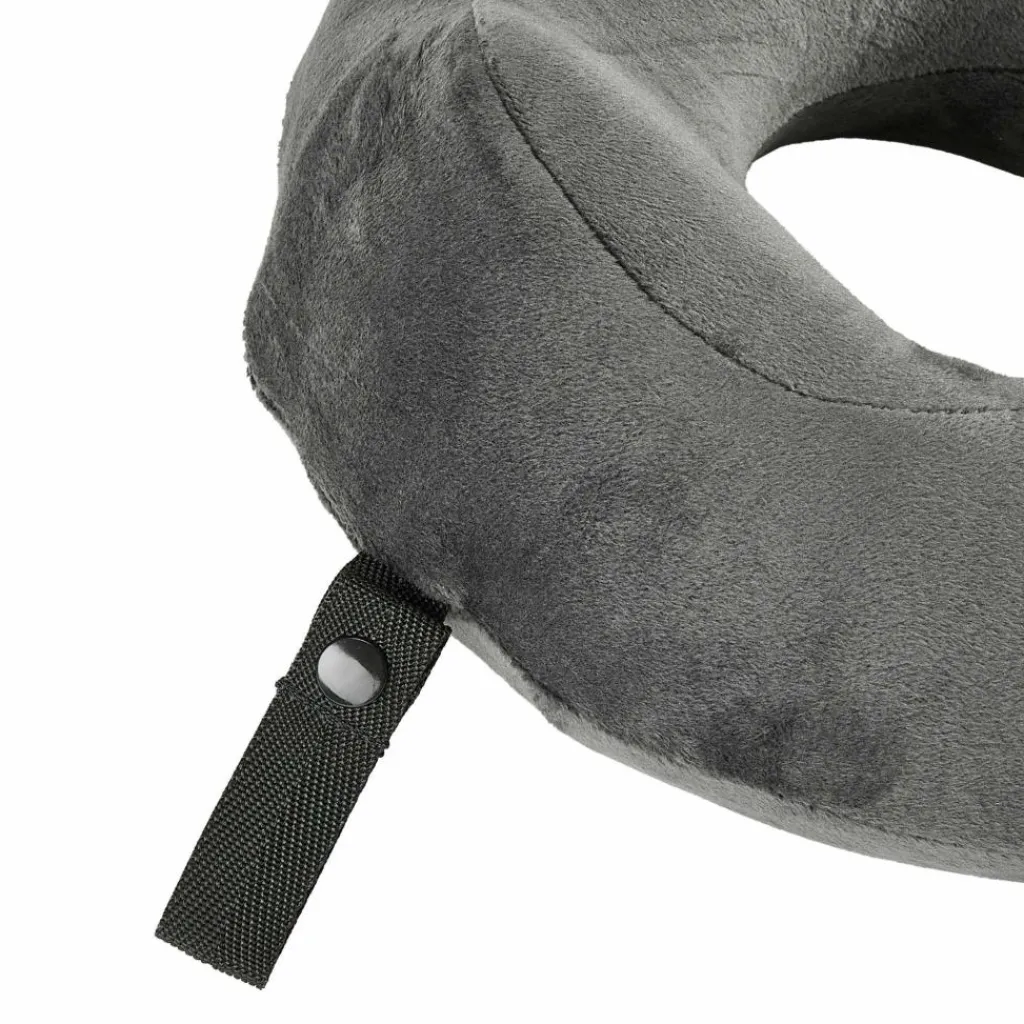 Das ergonomische Design des Nackenkissens stützt den Kopf zur Seite und nach hinten ab. Am Hals kann das Kissen durch einen Druckknopfverschluss verbunden werden, damit es sich nicht verdreht. Lange Bahn-, Auto- und Flugreisen können so bequemer überbrückt werden, sodass du am Ziel ausgeruhter ankommst. Während des Transports kannst du das Kissen an der Gurtbandschlaufe befestigen. Nach der Reise kann der Kissenbezug aus Microfleece abgenommen und gewaschen werden.