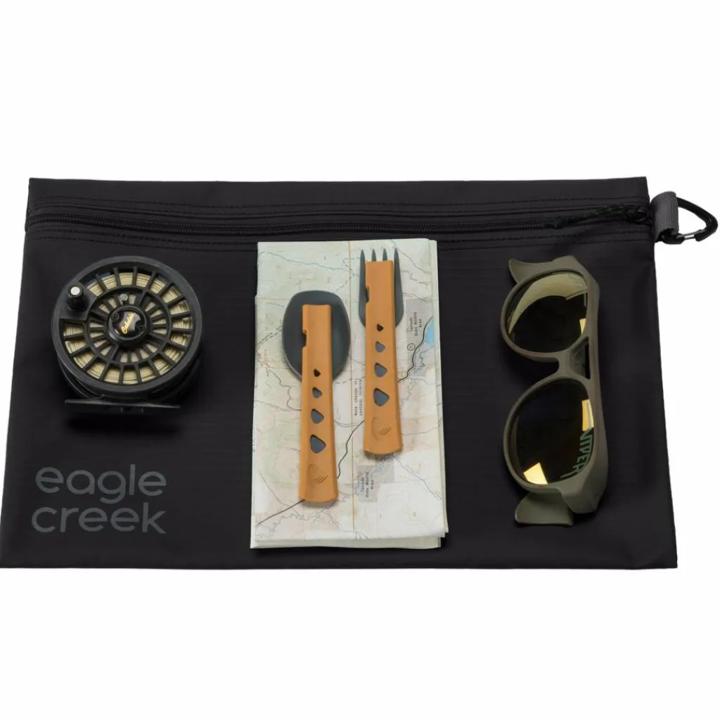 Die Pack-It Gear Reihe ist abenteuererprobt und scheut sich auch nicht vor dem Dauereinsatz. Das starke Nylon-Material schützt den Inhalt vor Abrieb und Schmutz. Die Außenseite des Pack-It Gear Pouch ist mit einer wasserabweisenden TPU-Laminierung versehen. Sowohl das Hauptmaterial als auch die TPU-Laminierung sind recycelt. Auf den Einsatz von PFAS wird bei Eagle Creek verzichtet und die Produkte haben eine Lifetime Warranty.