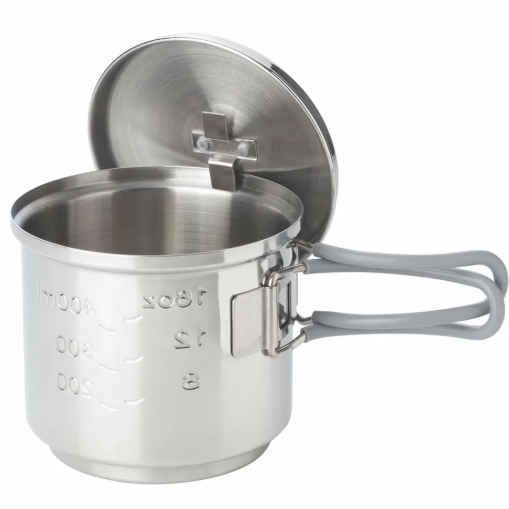 Das optimale Set für Ausflüge und Tageswanderungen! Das Trockenbrennstoff-Kochset besteht aus einem kleinen Edelstahltopf und Brennergestell für Esbit-Brennstoffwürfel.