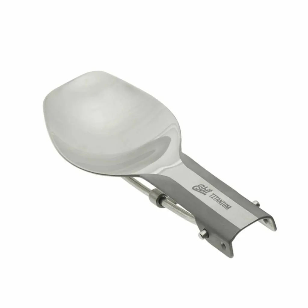 Klappbarer Titanlöffel mit poliertem Mundstück und geringem Gewicht. Alle Teile des Löffels sind aus Titan gefertigt. Besonders für lange Reisen geeignet, wo Gewicht und Packmaß entscheidend ist.