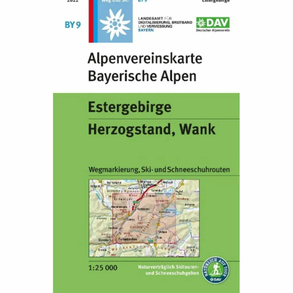 Topographische Karte Bayern 1:25.000, mehrfarbig, mit Wegmarkierungen, Skirouten, Schneeschuhrouten, Schutzgebiete, Bushaltestellen, Schummerung, Felszeichnung, Kennzeichnung der Klettersteige, UTM-Gitter.Gebiet: Estergebirges mit Herzogstand, Walchensee, Garmisch-Partenkirchen usw.Karte in Kunststoffhülle (Polypropylen) eingesteckt.