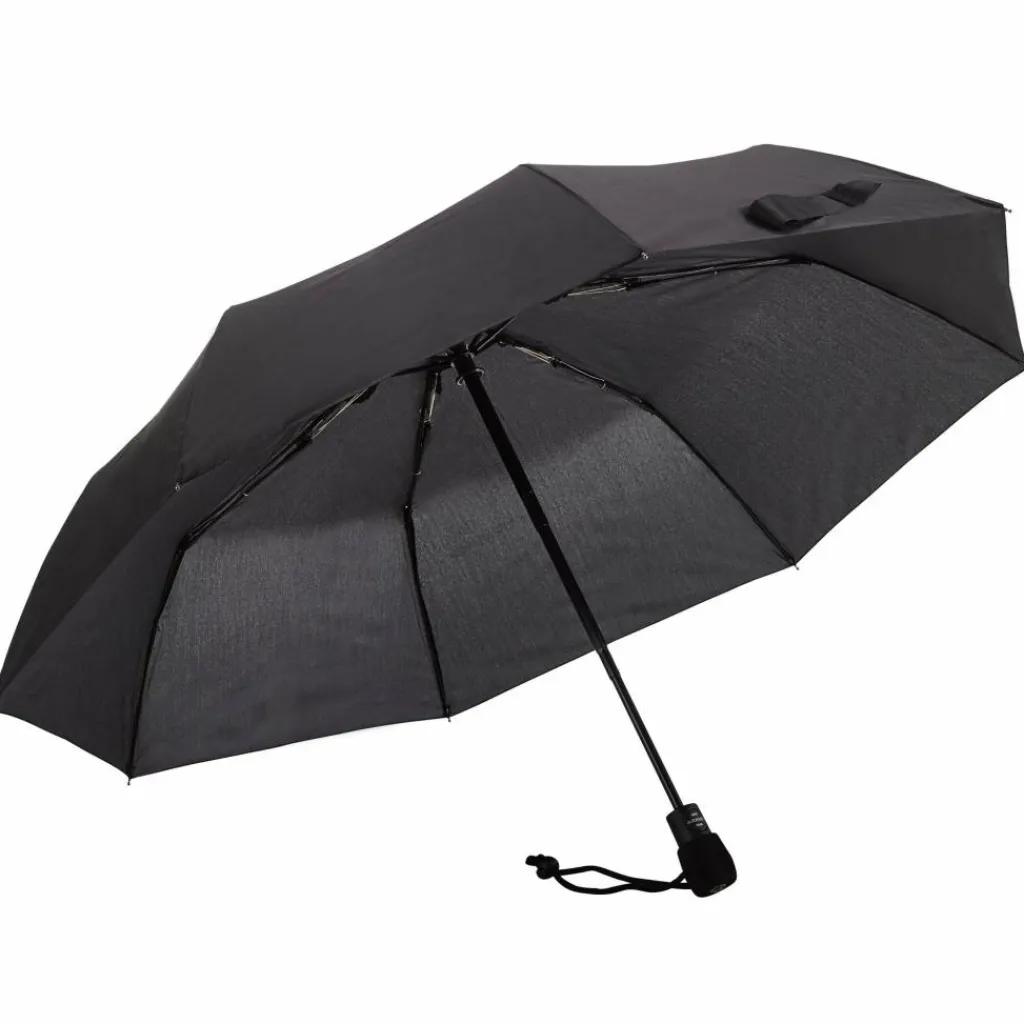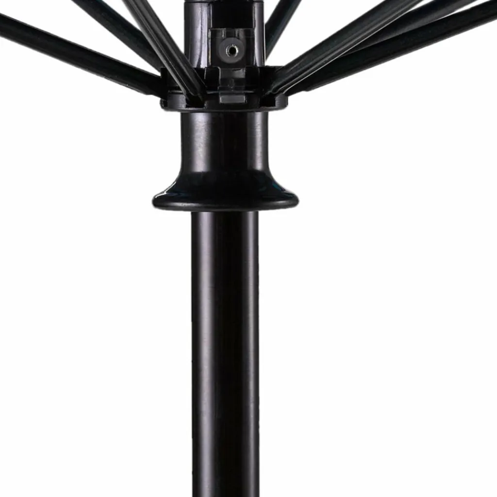 Das Packmaß ist mit nur 29×5 cm wirklich winzig. Der Schirm ist aus leichtem, extrem robusten Polyester-Gewebe mit Teflon–Beschichtung gefertigt. Für Stabilität sorgen Doppelnähte zwischen den einzelnen Segmenten. Ein gehärteter Aluminium/Metall-Profil-Schaft trägt die weiteren Gestellteile aus Glasfaser, Eloxal-Aluminium und Glasfaser-Polyamid. Alle Gestellteile sind natürlich hochelastisch, korrosions- und verrottungsfest. Zum Transport dient eine robuste Nylon-Hülle mit Polyester Netzeinsatz und Fixierschlaufe zum Tragen am Rucksack oder Gürtel, sowie ein Aluminium-Karabiner als weitere Befestigungsalternative.