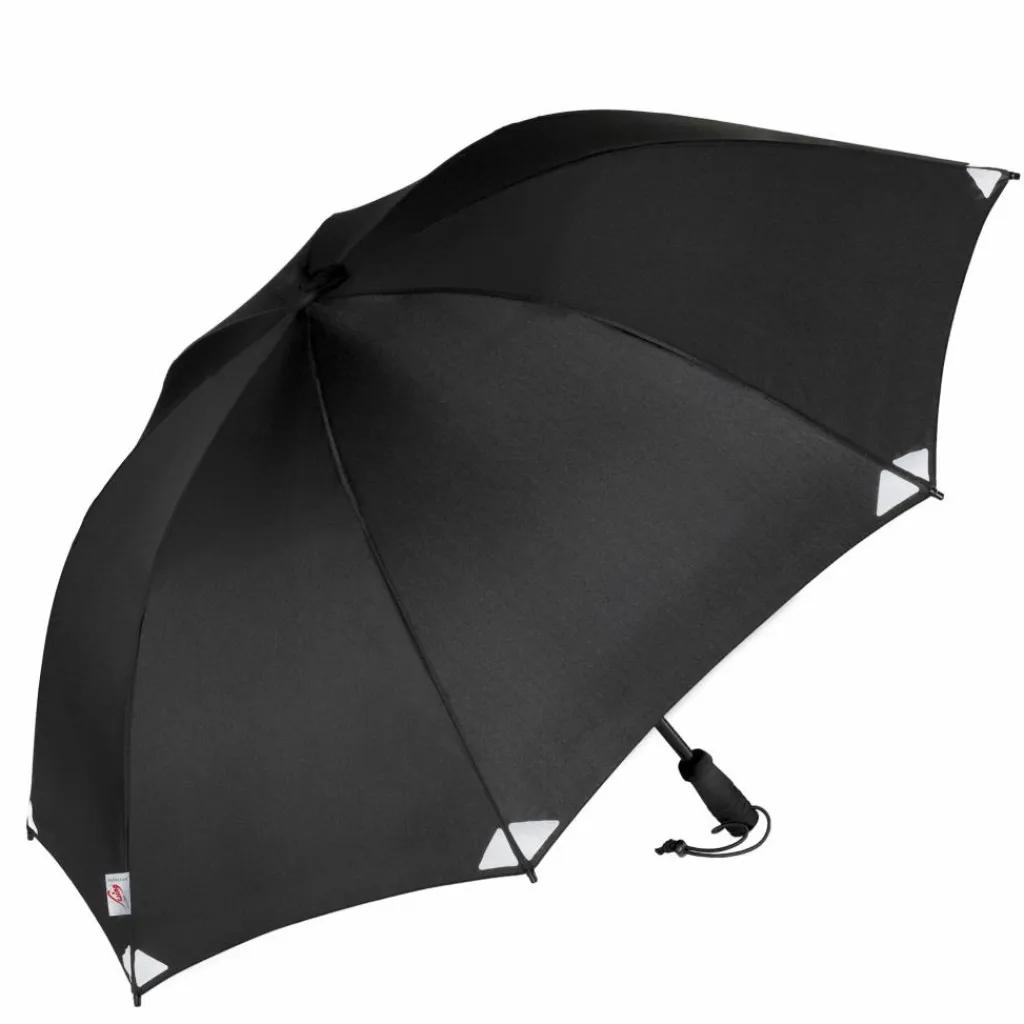 Das Besondere an diesem Schirm sind zwei drehbare Halteclips, die mit einem Nylon-Klettband vorne an Schulter- und Hüftgurt eines Rucksacks befestigt werden können. So “trägt“ sich der Schirm von allein und man hat beide Hände frei, ideal für Fotografen. Je nach Windrichtung, kann der Schirm links oder rechts positioniert werden. Der Teleskop-Fiberglas-Schaft kann bis auf eine Länge von ca. einem Meter stufenlos ausgezogen und mit einer kleinen Drehbewegung in jeder Höhen-Position fixiert werden. Mit Griff aus High-Density-Hartschaum.